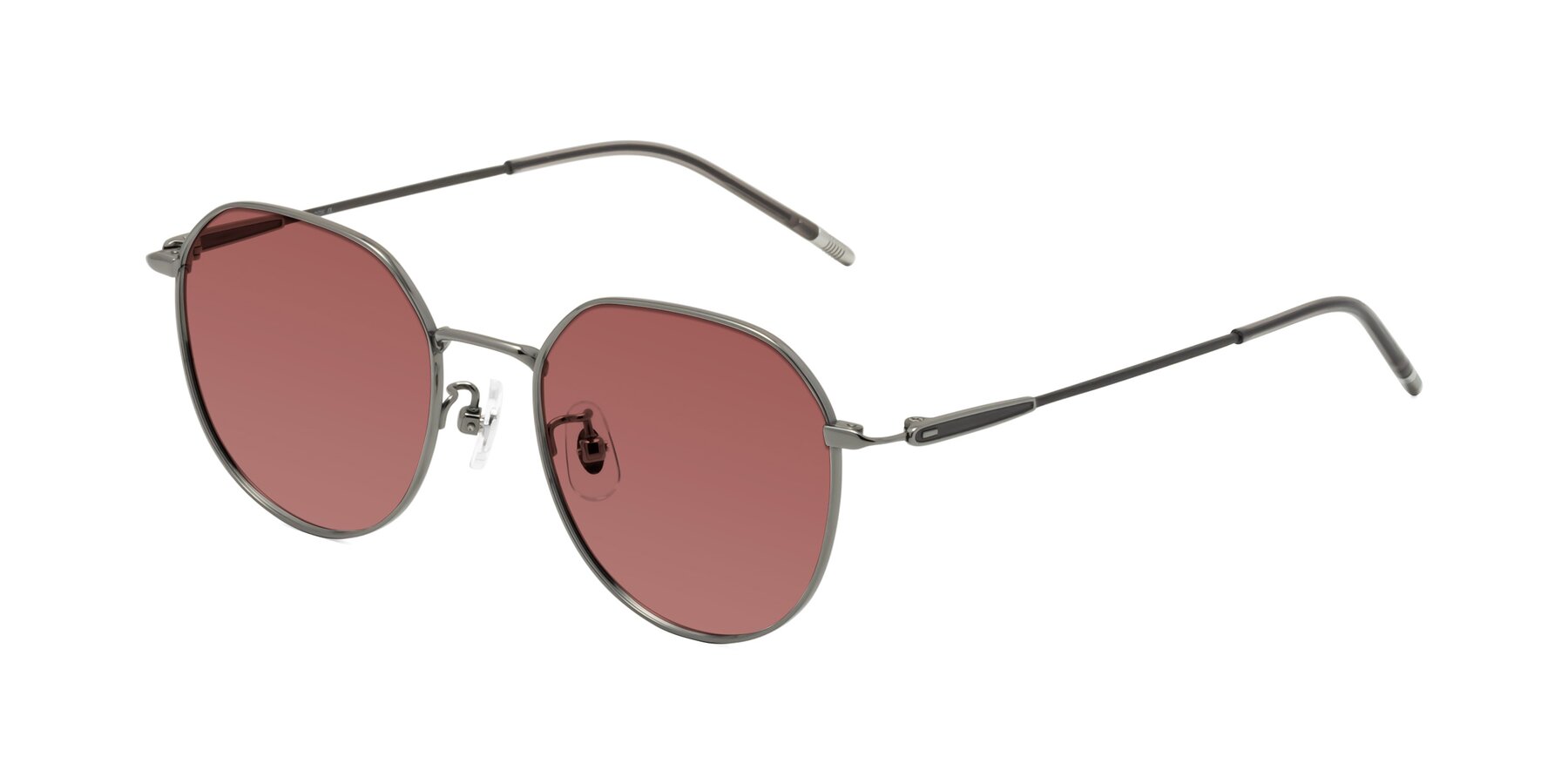 Gunmetal Titanium Round Geometric Tinted Sunglasses with Garnet Sunwear Lenses