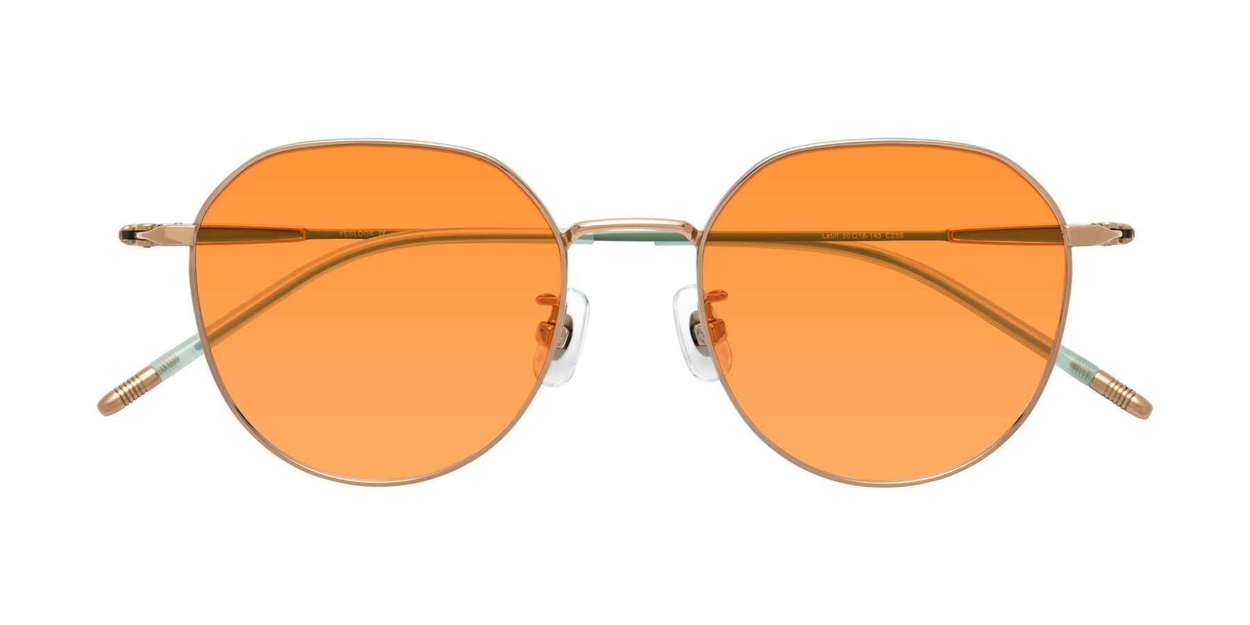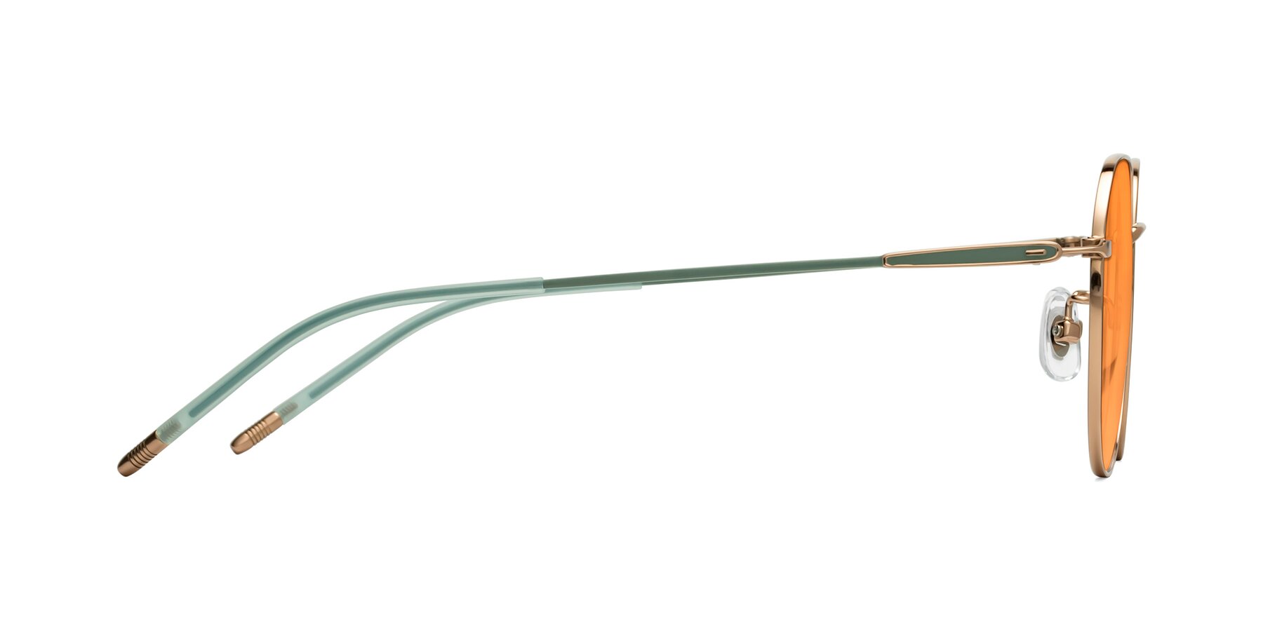 Rose Gold/Teal Titanium Round Geometric Tinted Sunglasses with Orange Sunwear Lenses