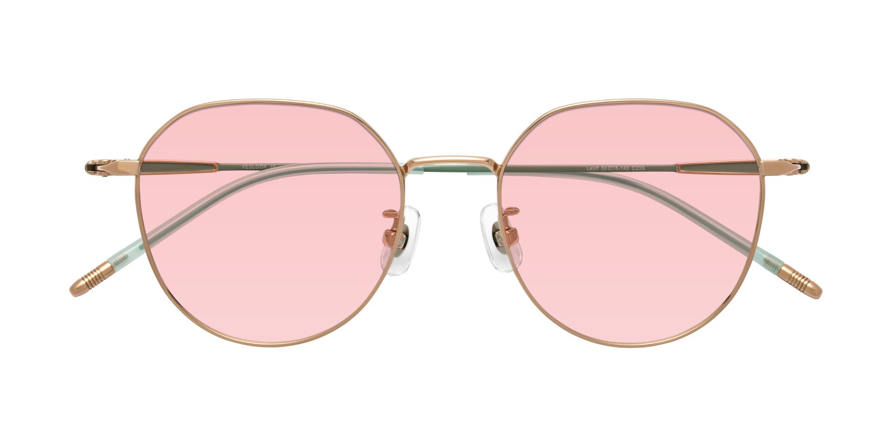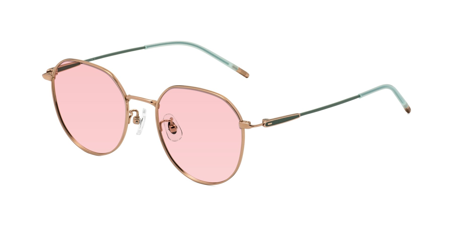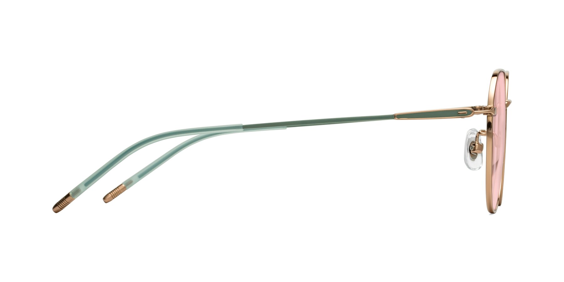 Rose Gold/Teal Titanium Round Geometric Tinted Sunglasses with Light Garnet Sunwear Lenses