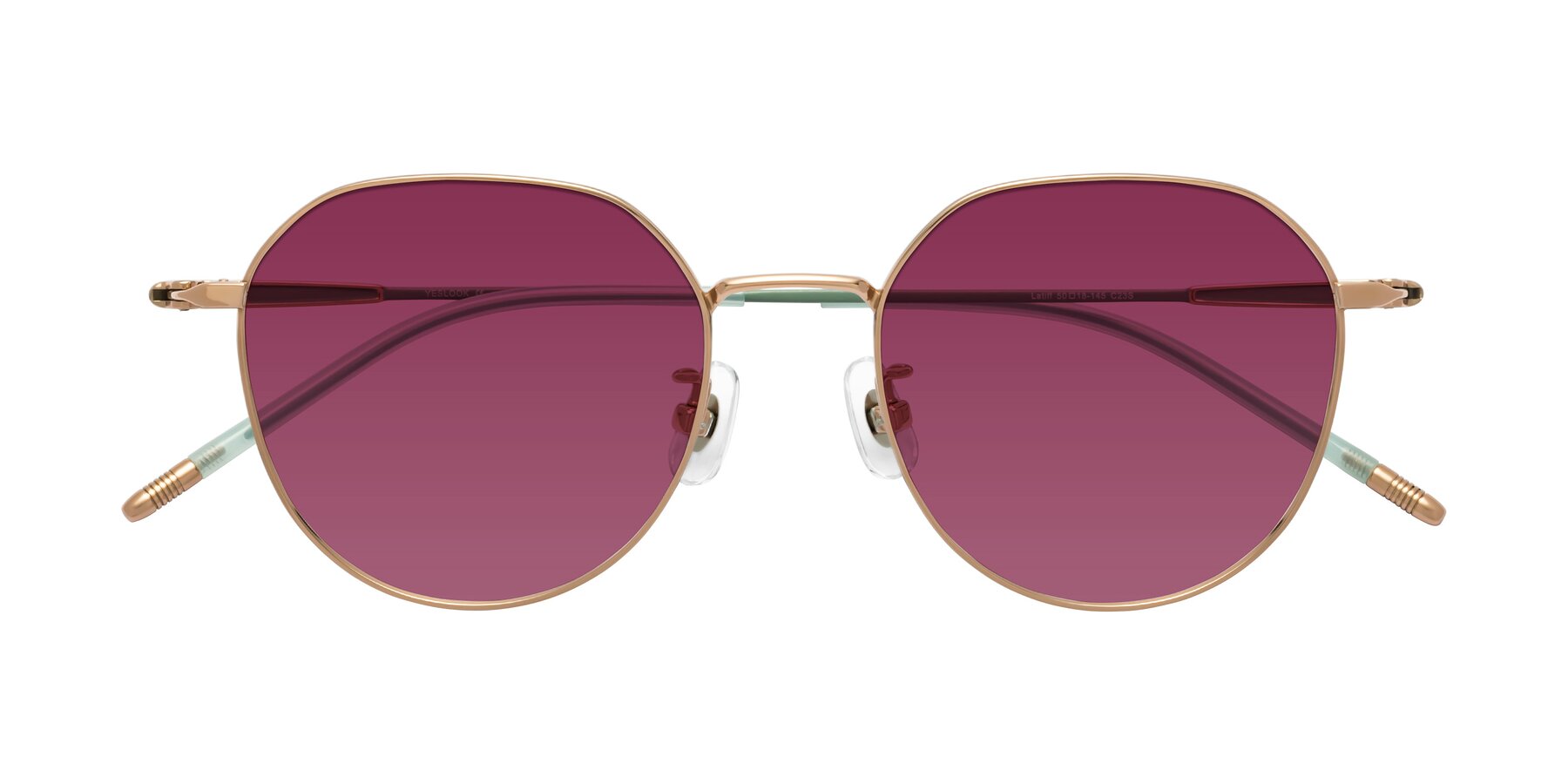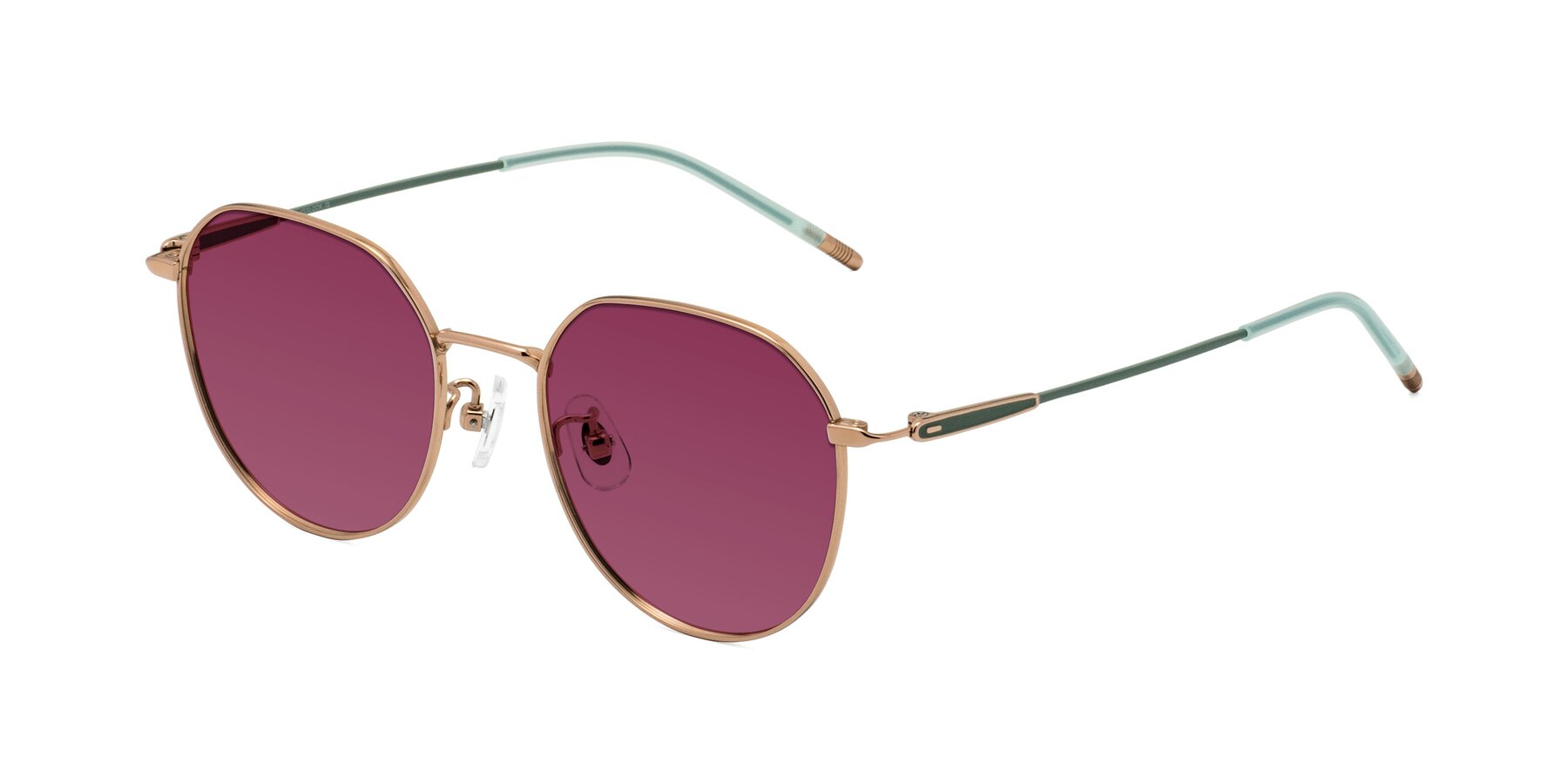 Rose Gold/Teal Titanium Round Geometric Tinted Sunglasses with Wine Sunwear Lenses