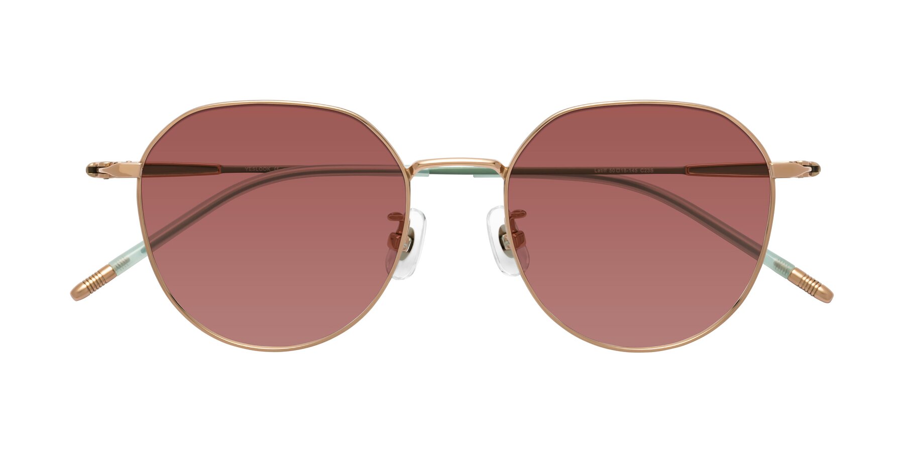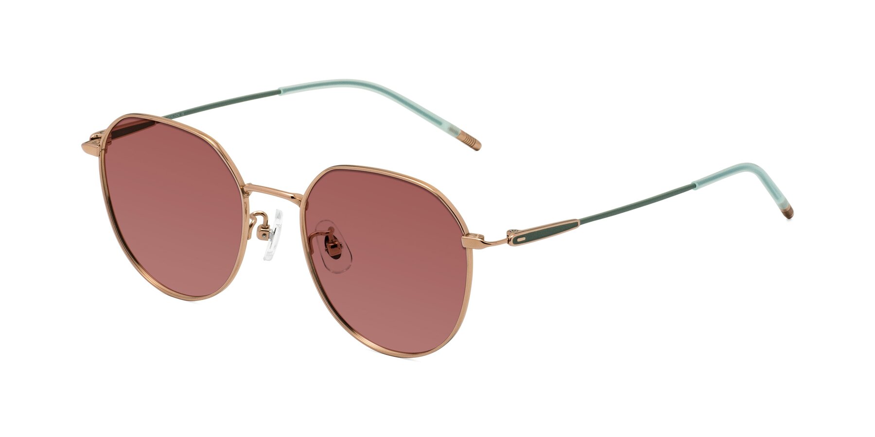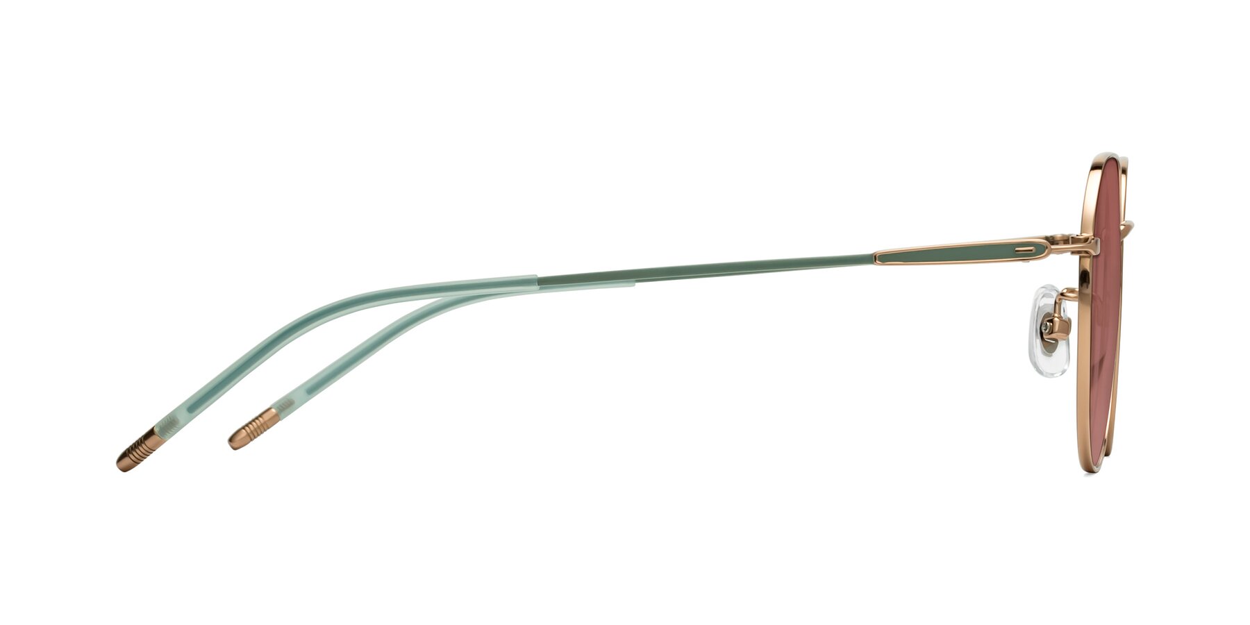 Rose Gold/Teal Titanium Round Geometric Tinted Sunglasses with Garnet Sunwear Lenses