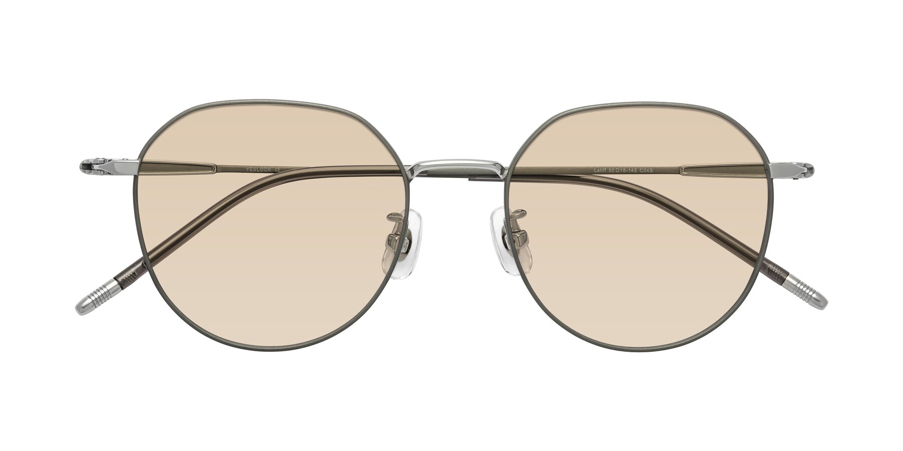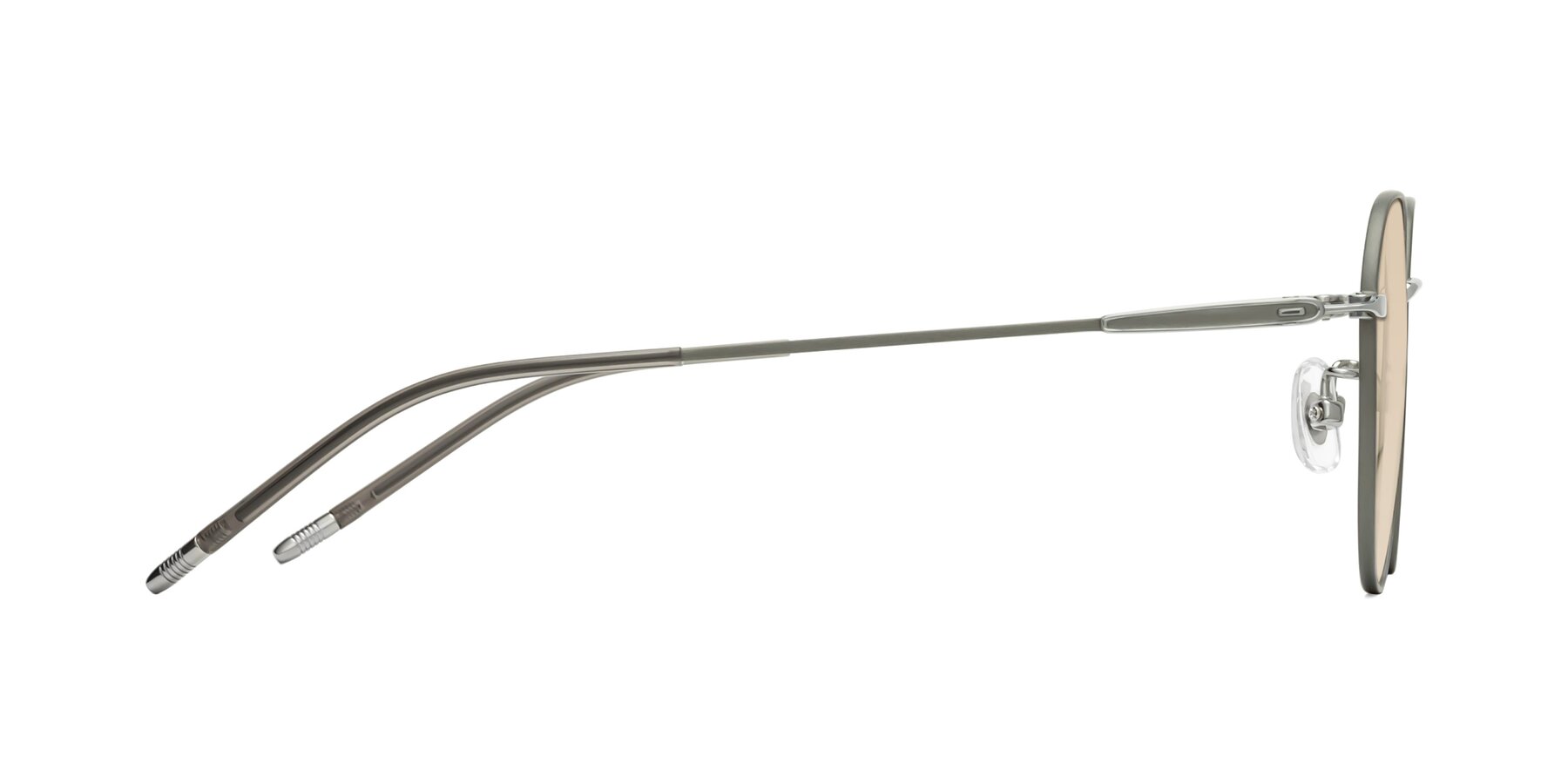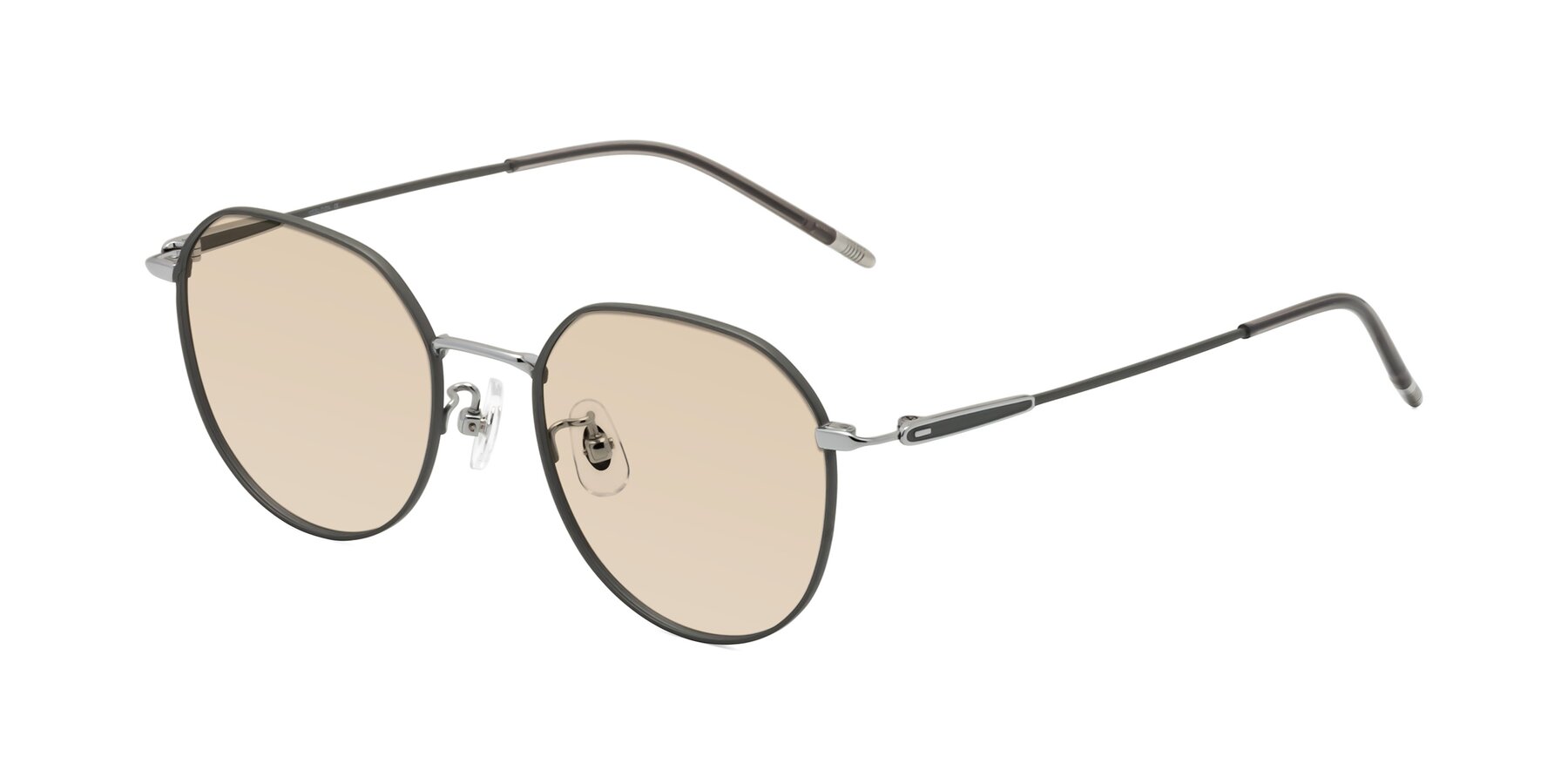 Metallic Gray Titanium Round Geometric Tinted Sunglasses with Light Brown Sunwear Lenses