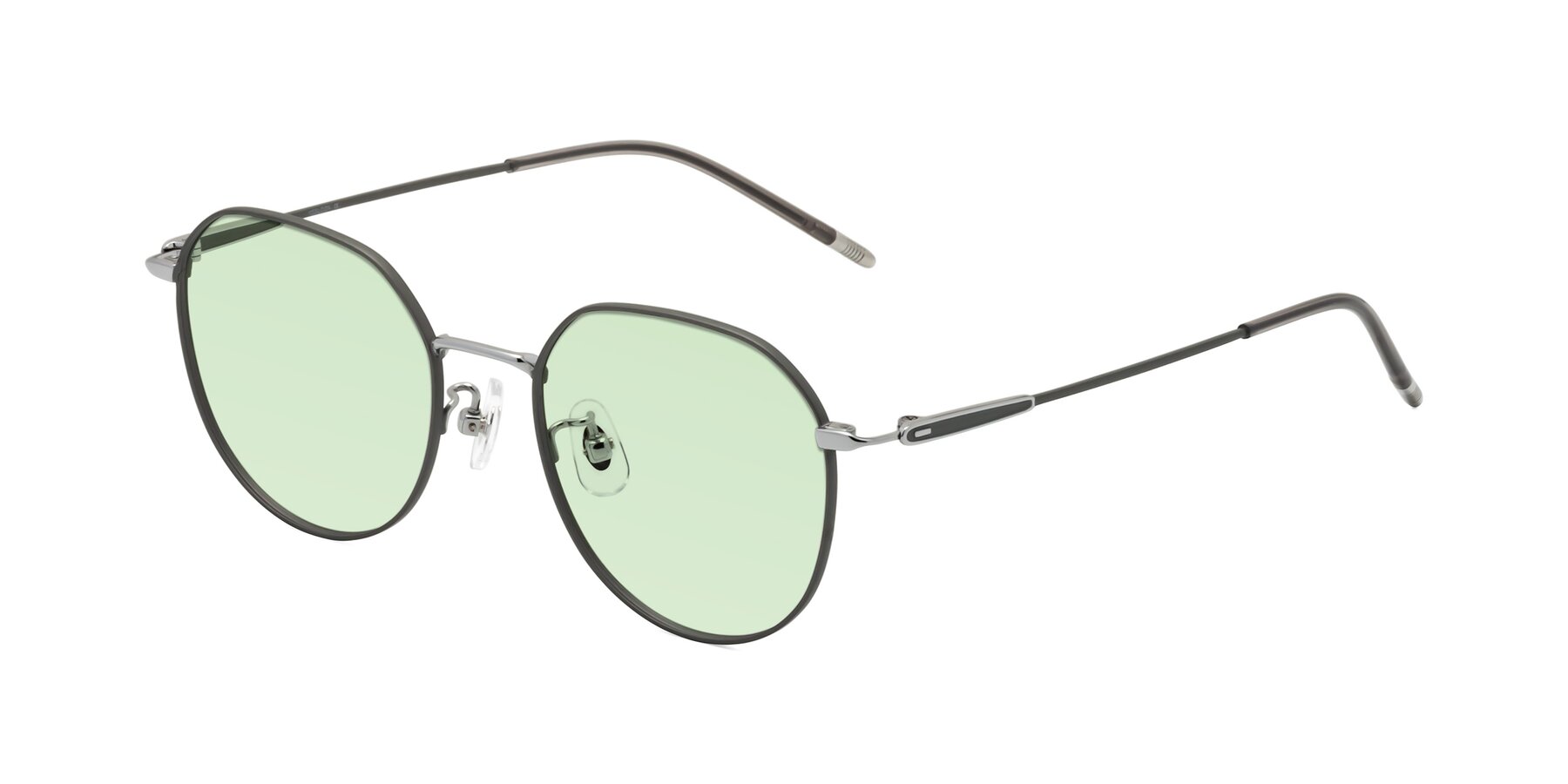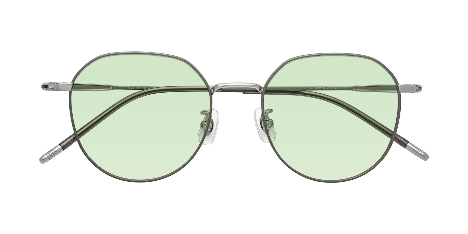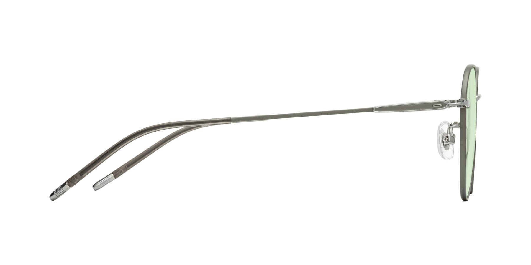 Metallic Gray Titanium Round Geometric Tinted Sunglasses with Light Green Sunwear Lenses