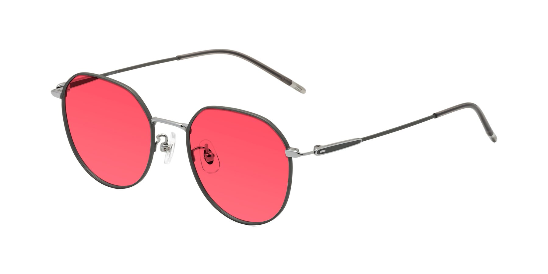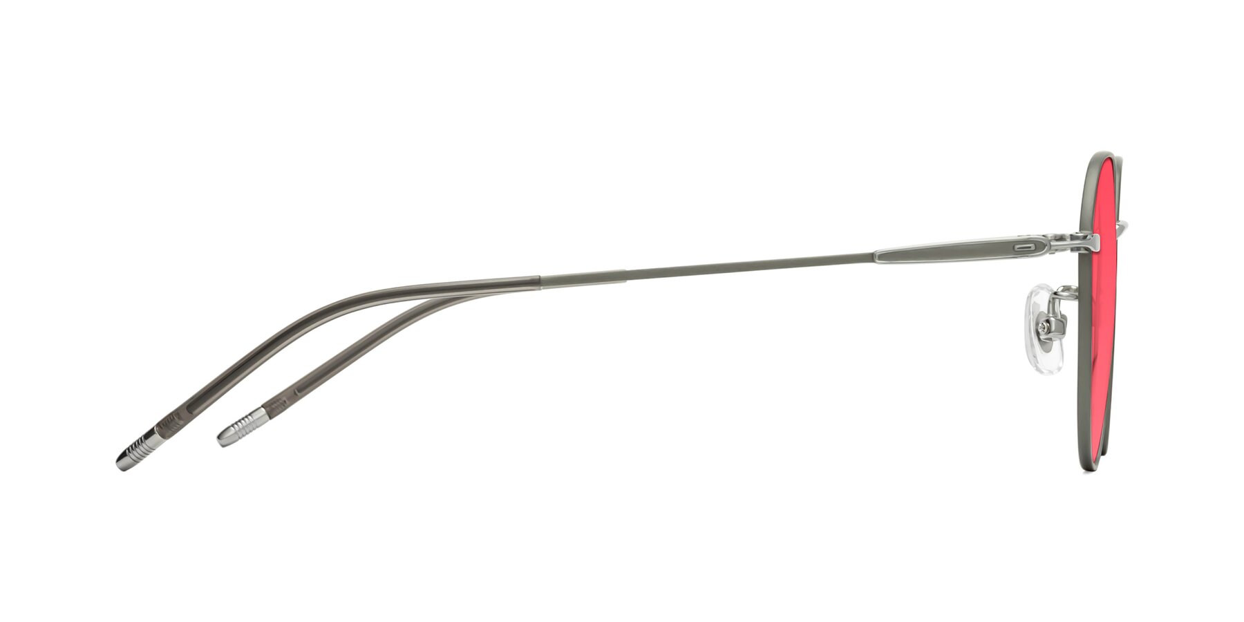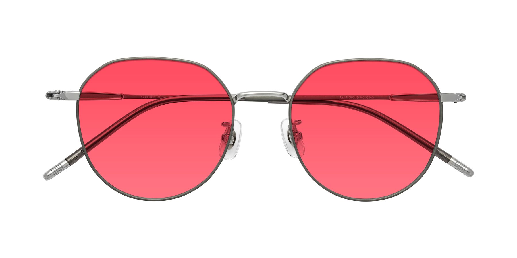 Metallic Gray Titanium Round Geometric Tinted Sunglasses with Red Sunwear Lenses