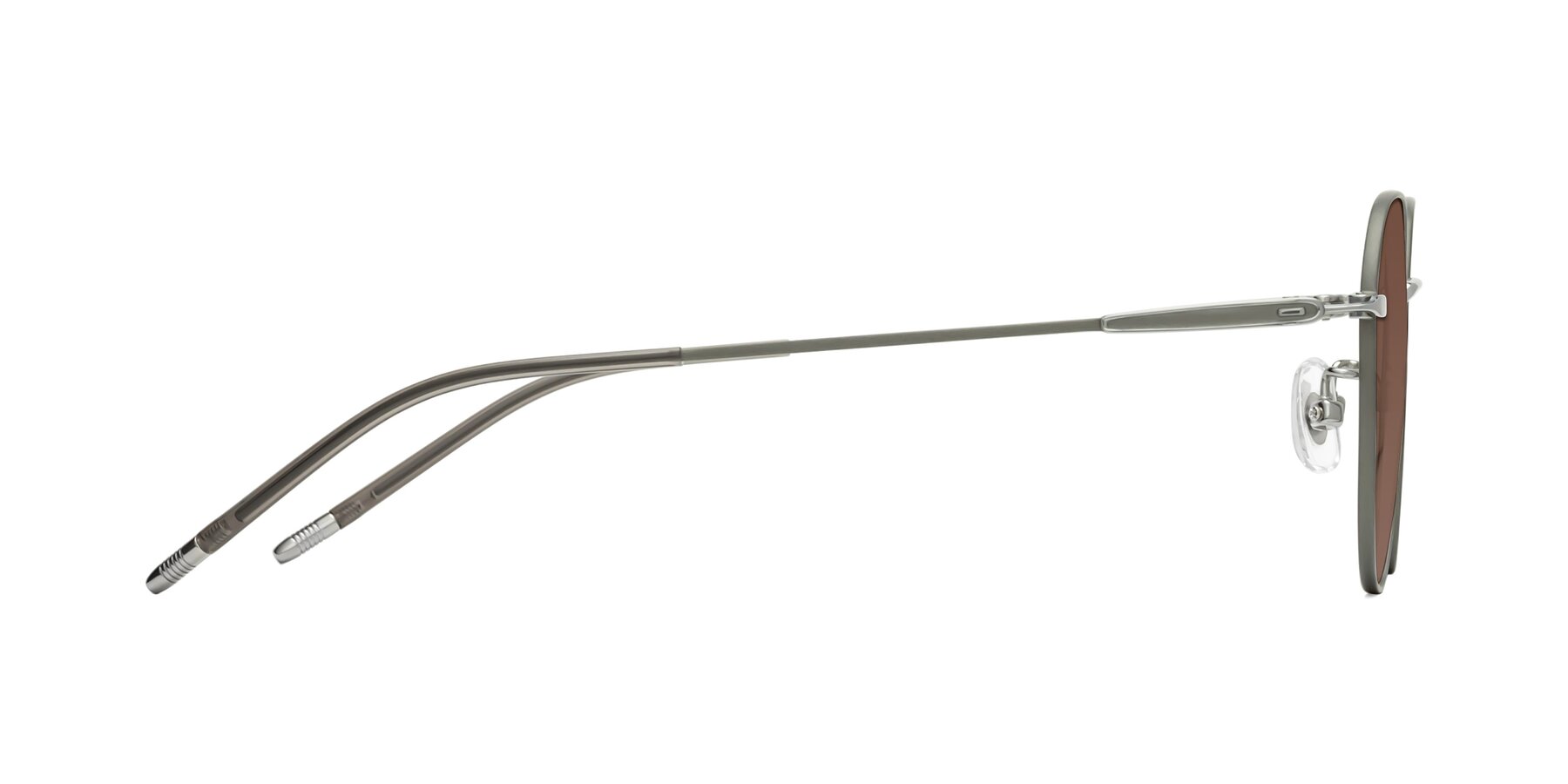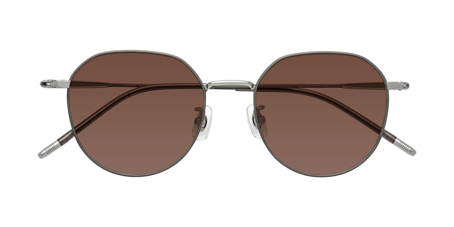 Metallic Gray Titanium Round Geometric Tinted Sunglasses with Brown Sunwear Lenses