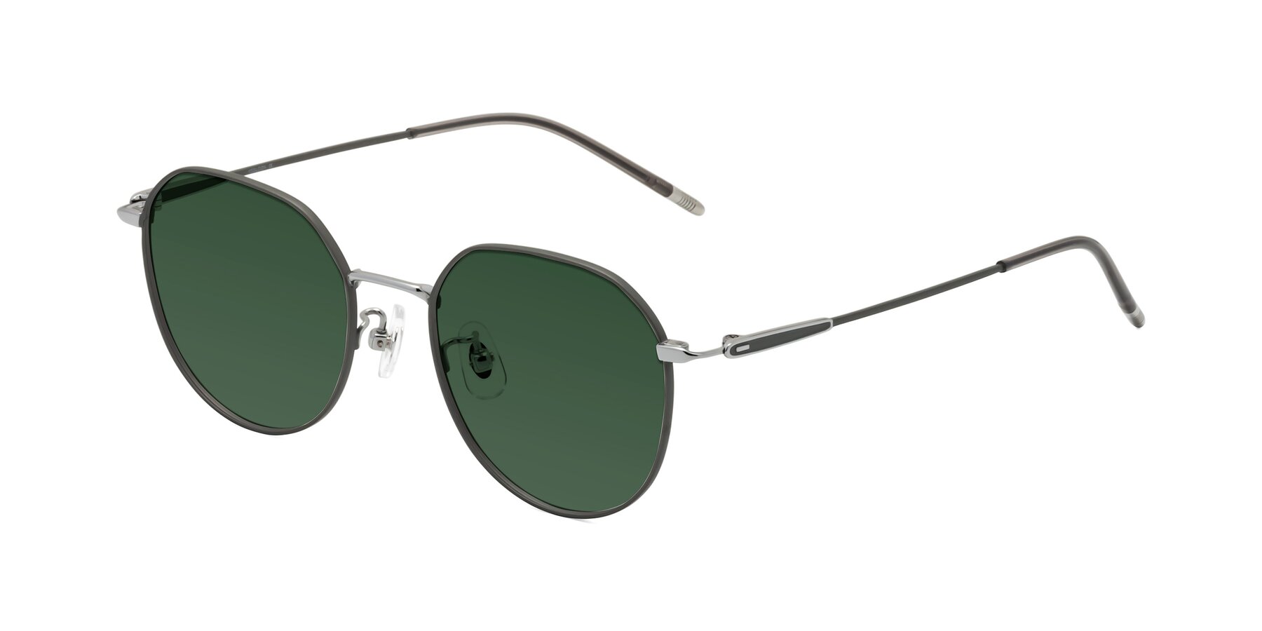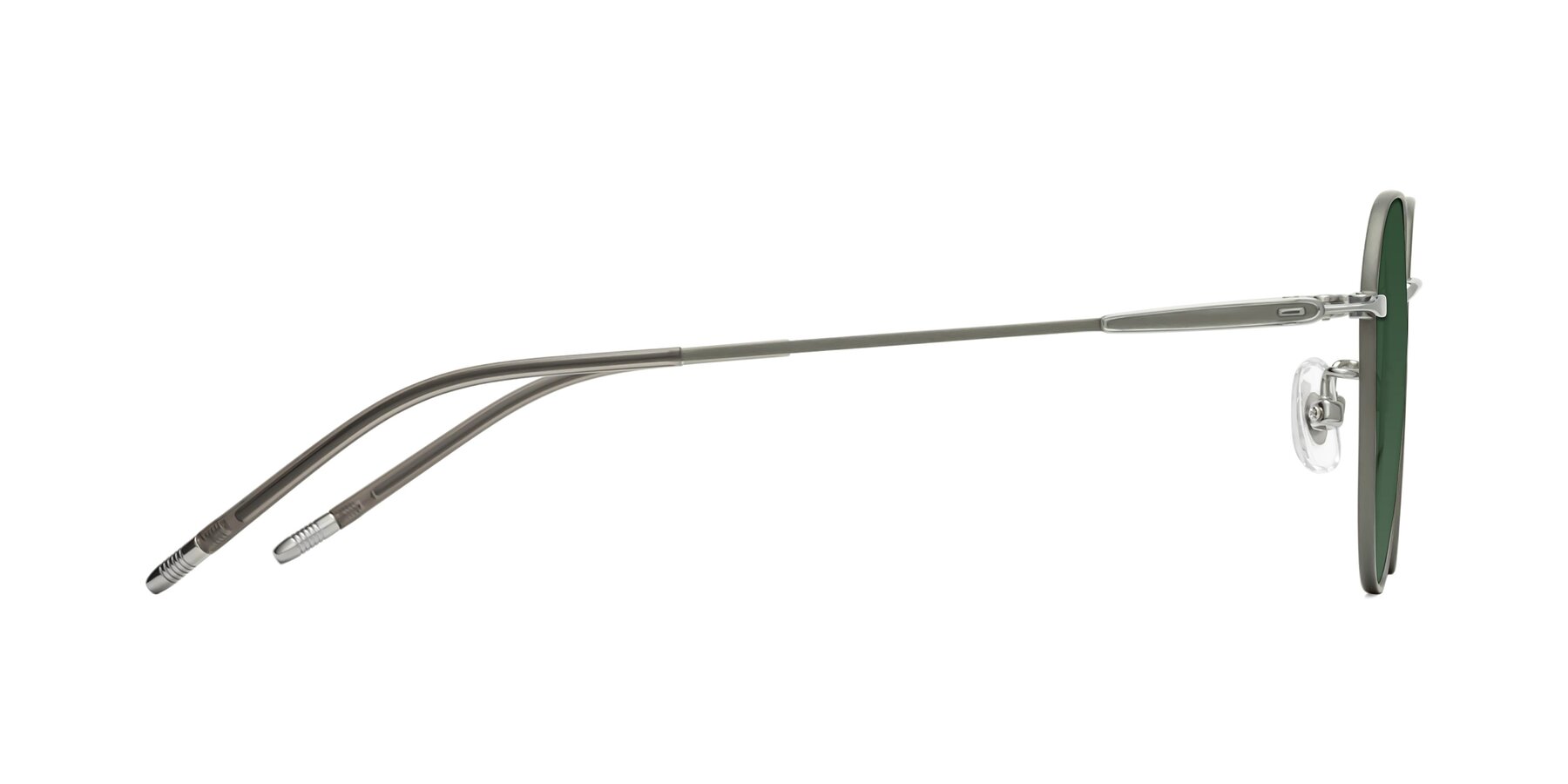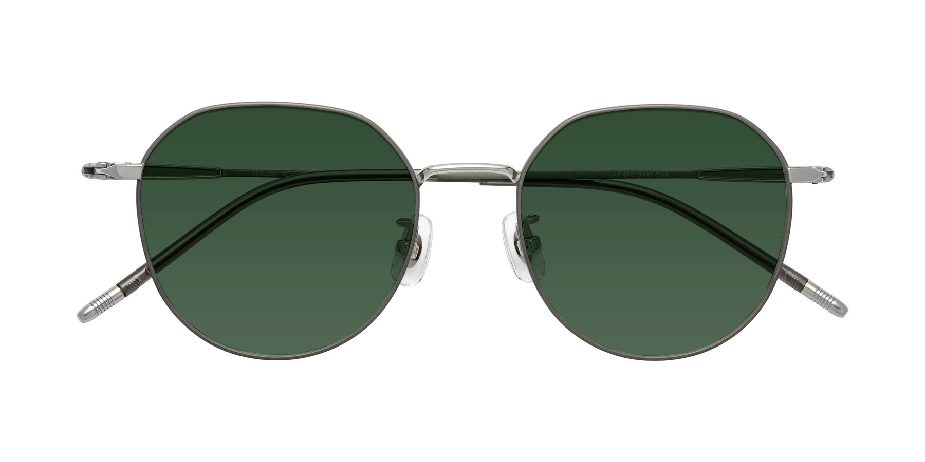 Metallic Gray Titanium Round Geometric Tinted Sunglasses with Green Sunwear Lenses