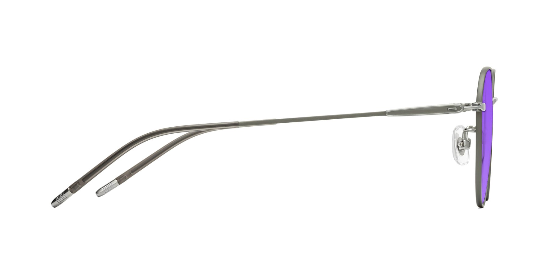 Metallic Gray Titanium Round Geometric Tinted Sunglasses with Purple Sunwear Lenses