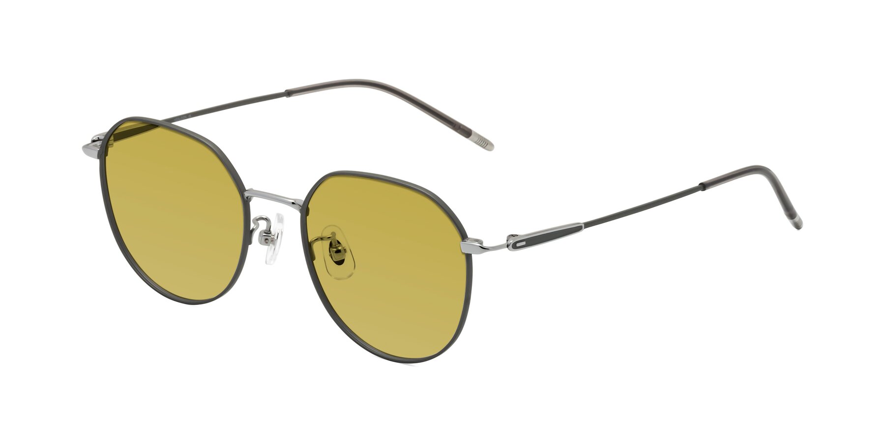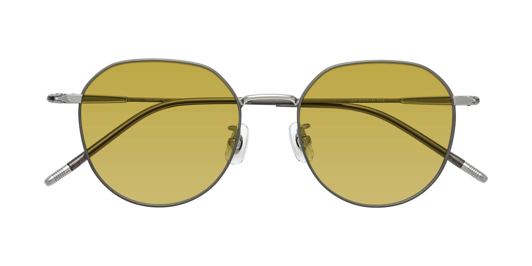 Metallic Gray Titanium Round Geometric Tinted Sunglasses with Champagne Sunwear Lenses