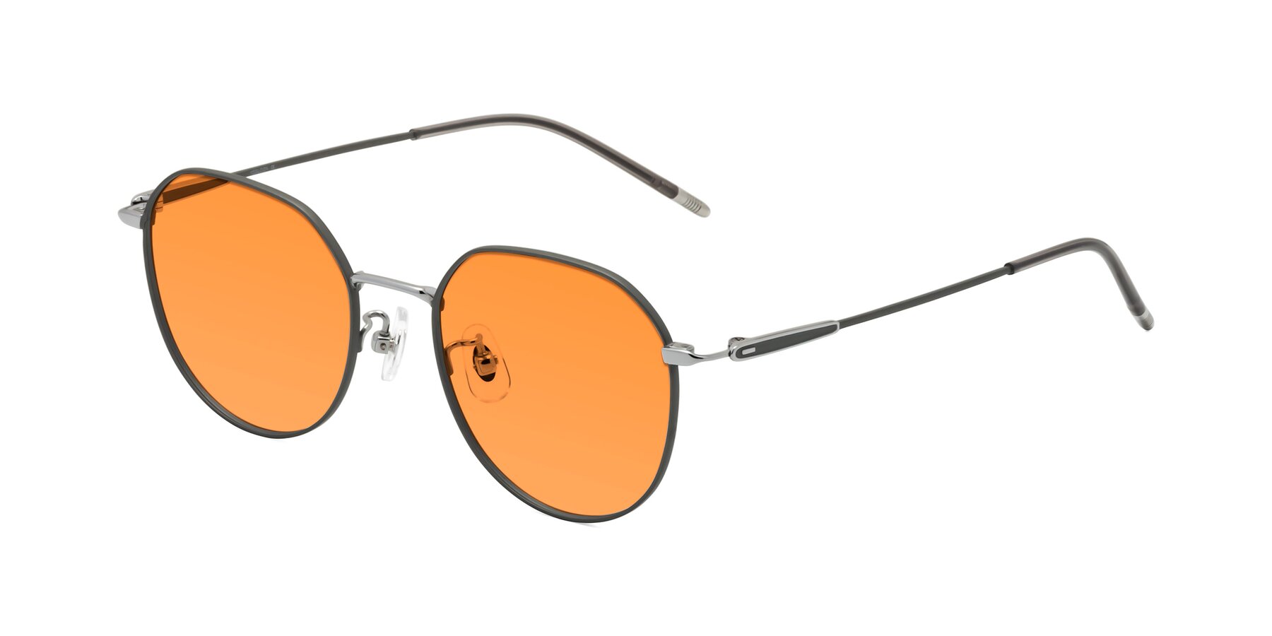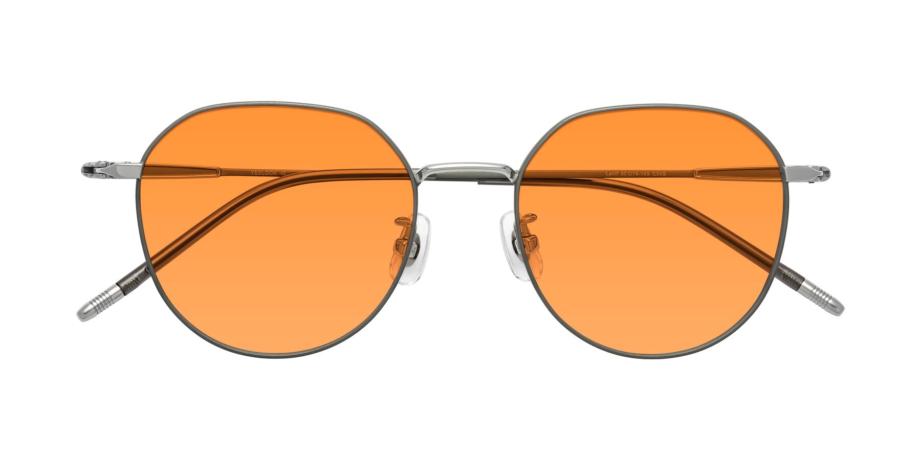 Metallic Gray Titanium Round Geometric Tinted Sunglasses with Orange Sunwear Lenses