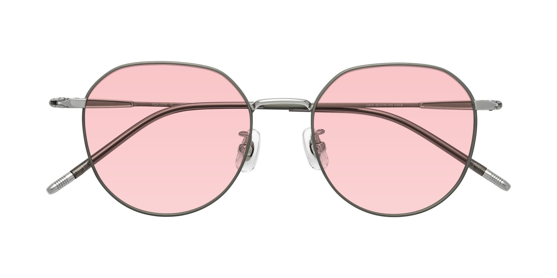 Metallic Gray Titanium Round Geometric Tinted Sunglasses with Light Garnet Sunwear Lenses