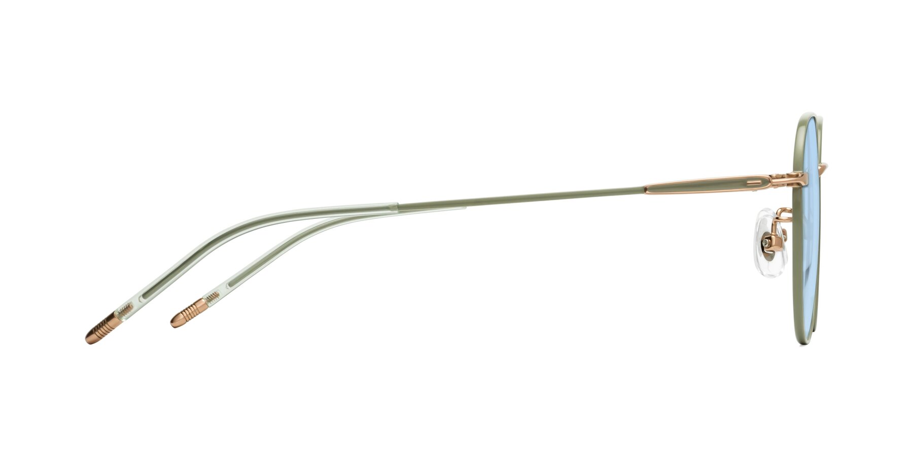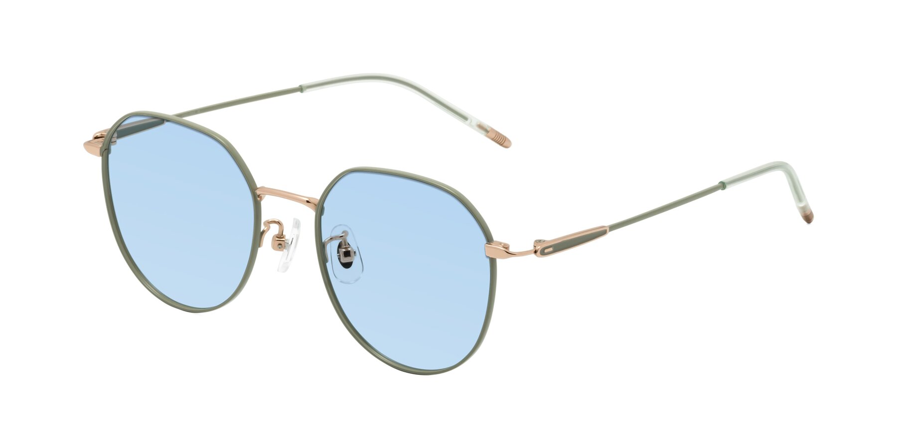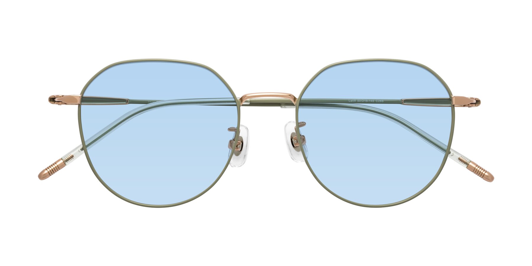 Dusty Olive Titanium Round Geometric Tinted Sunglasses with Light Blue Sunwear Lenses