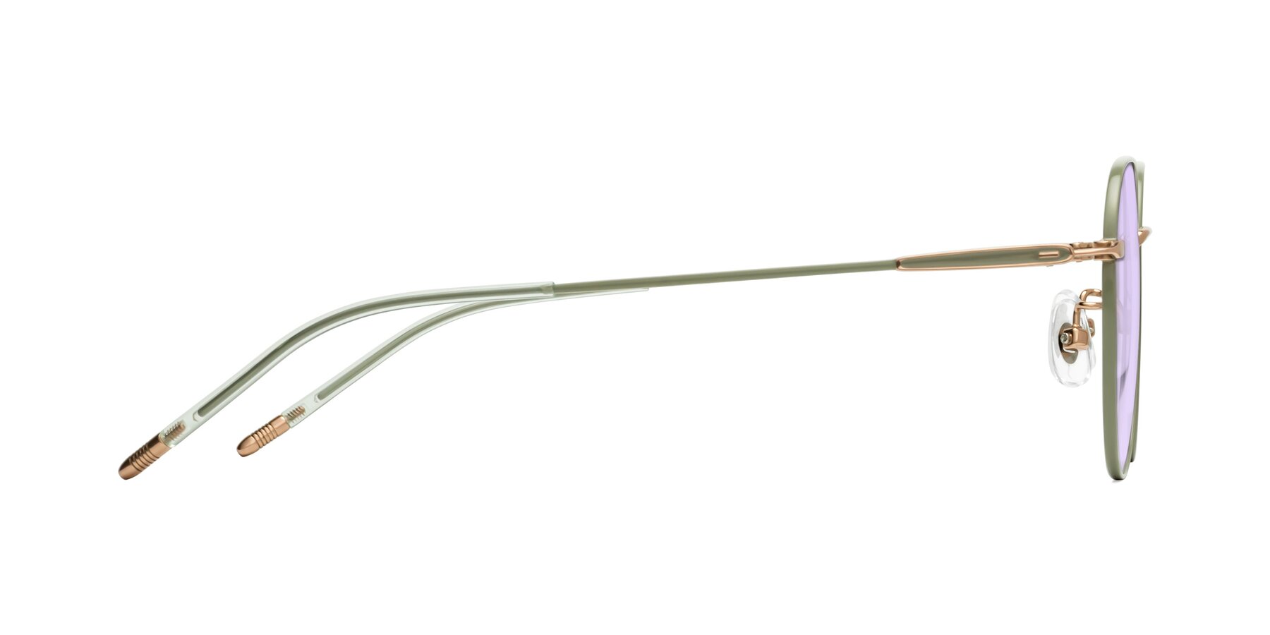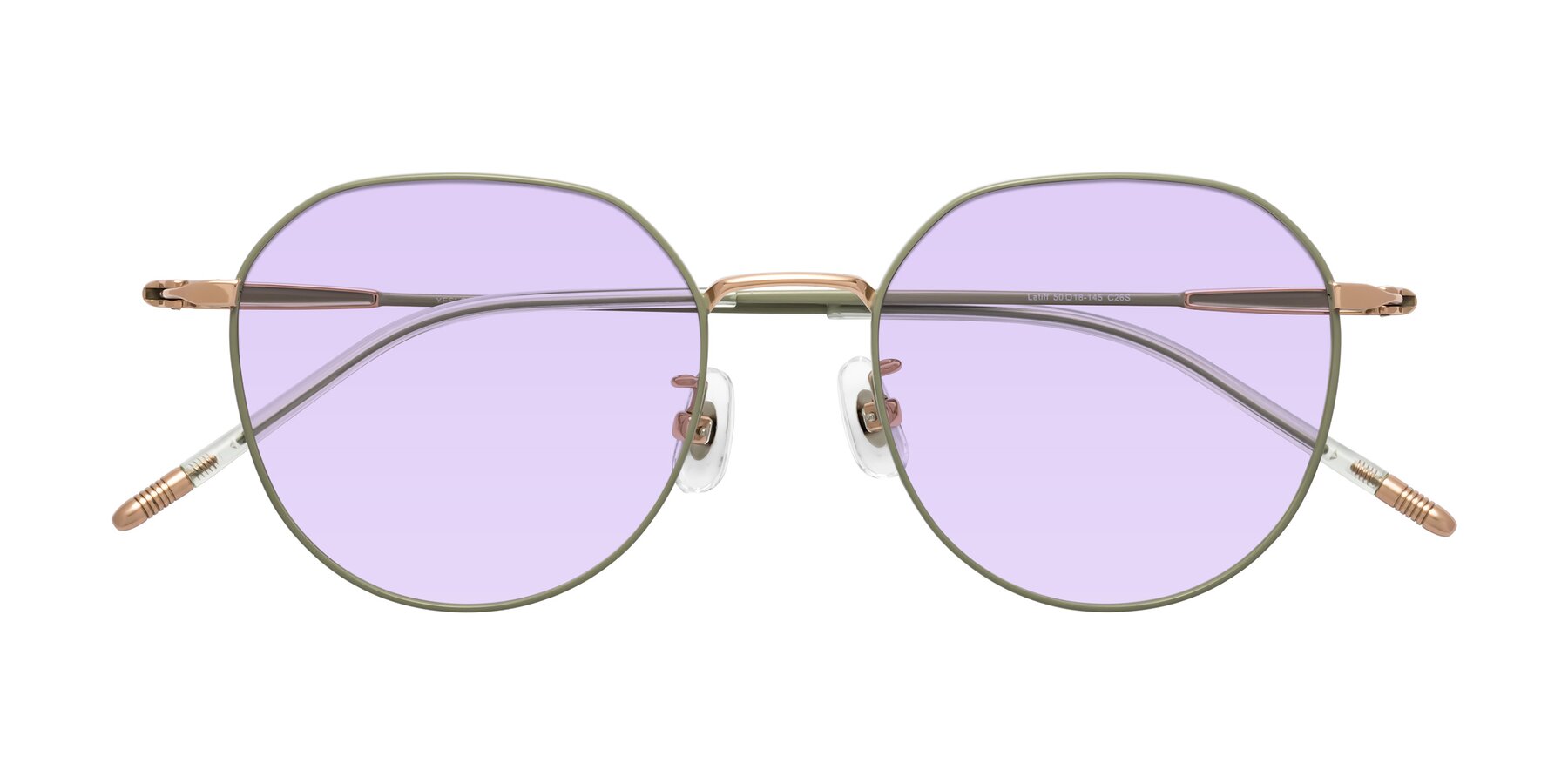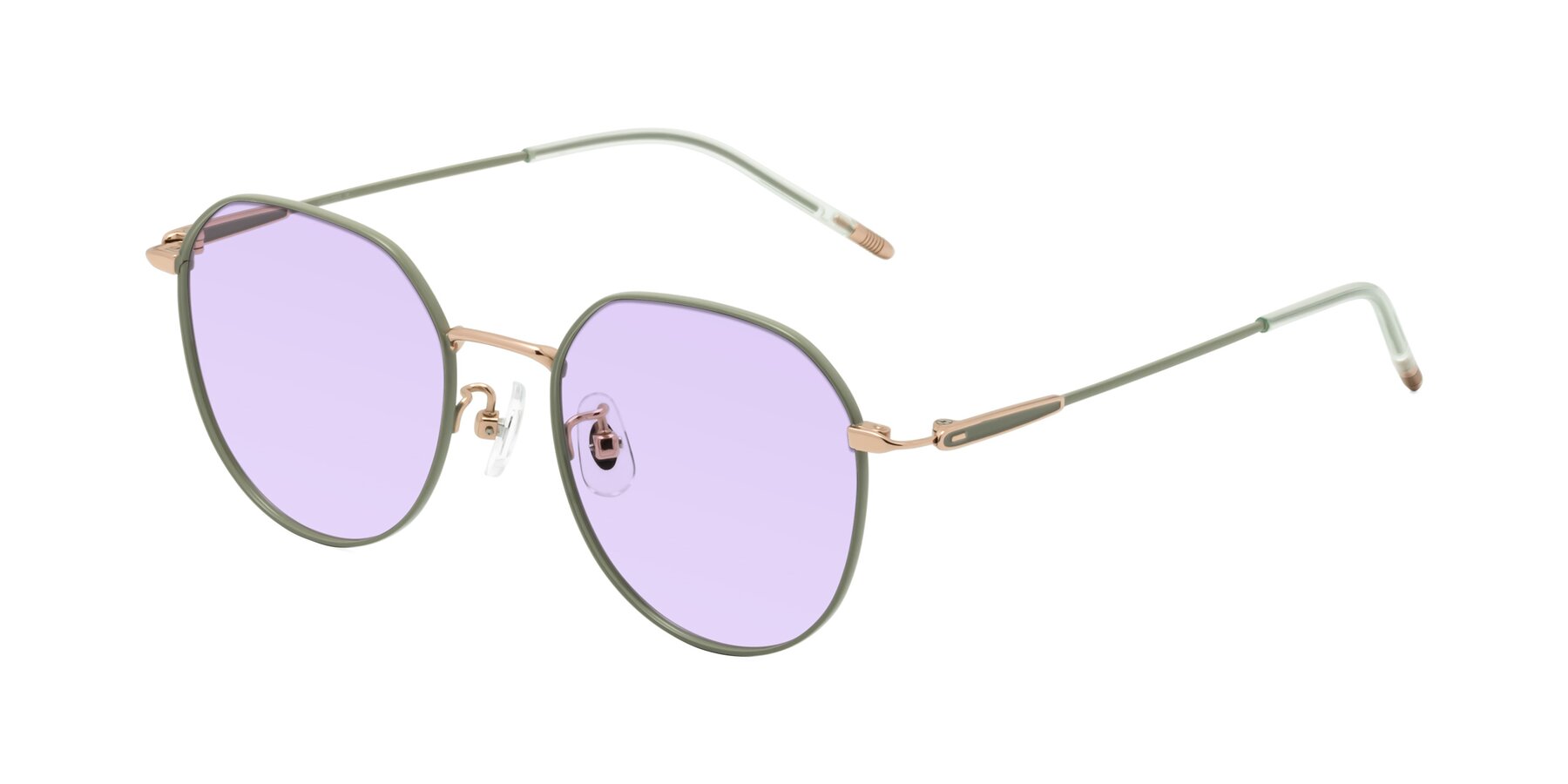 Dusty Olive Titanium Round Geometric Tinted Sunglasses with Light Purple Sunwear Lenses