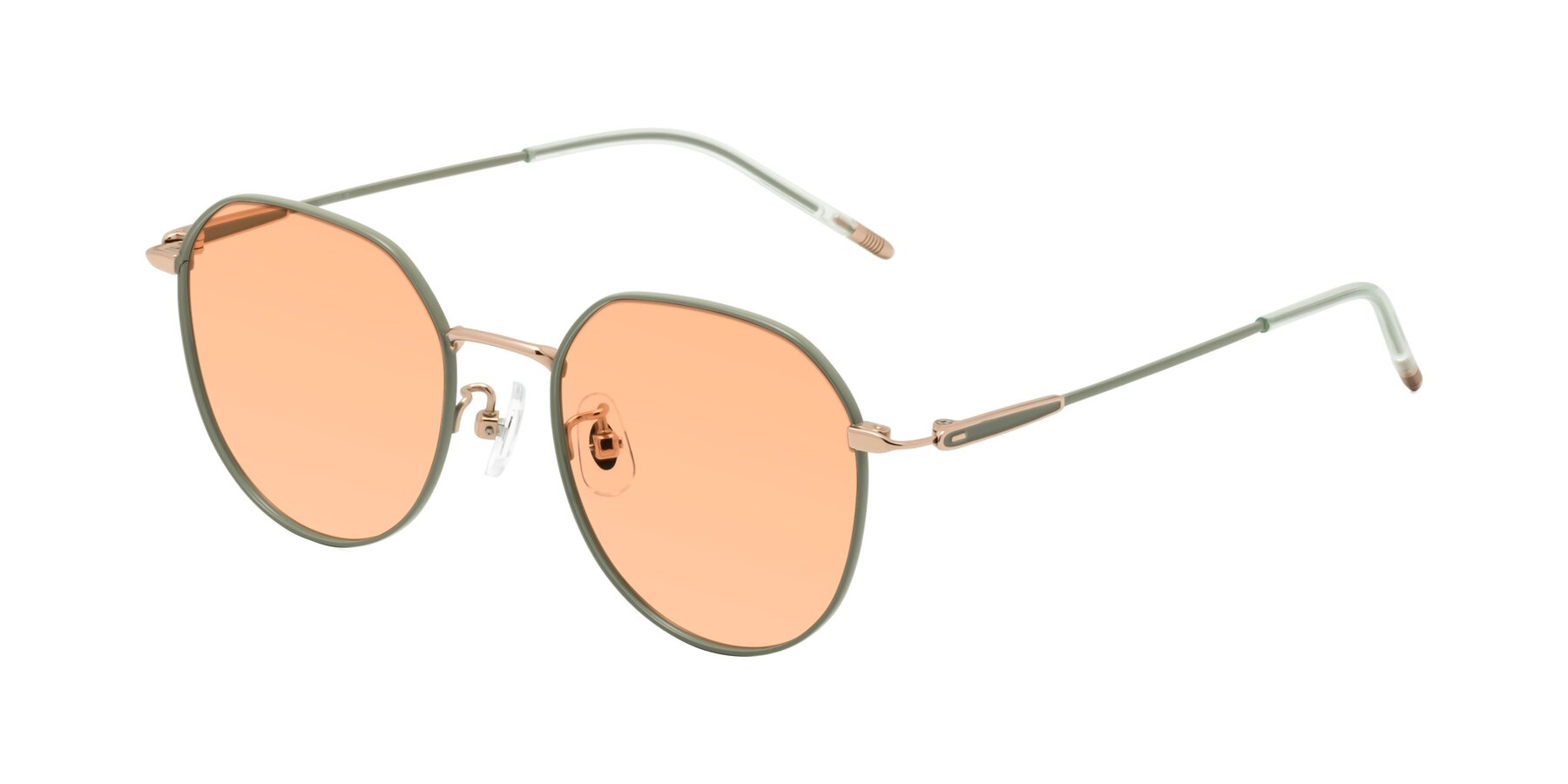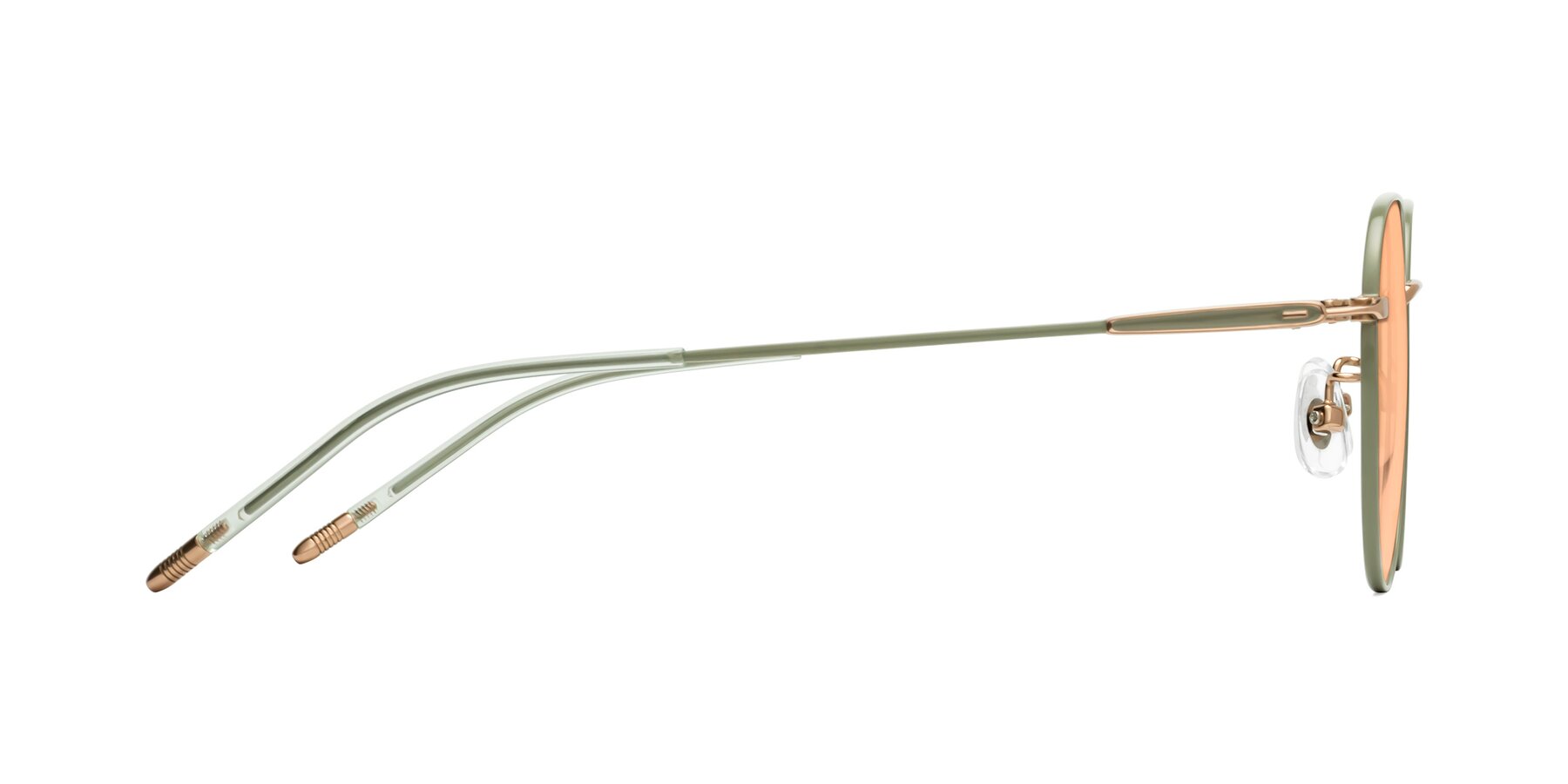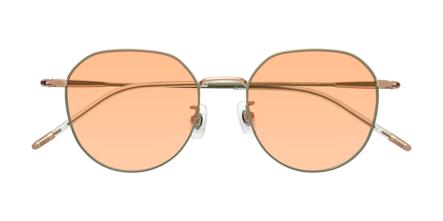 Dusty Olive Titanium Round Geometric Tinted Sunglasses with Light Orange Sunwear Lenses