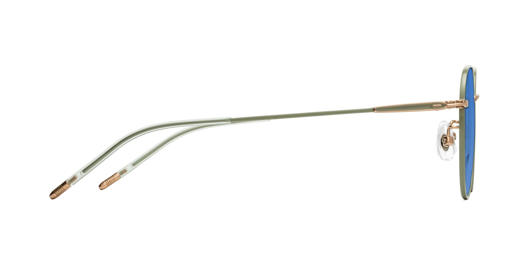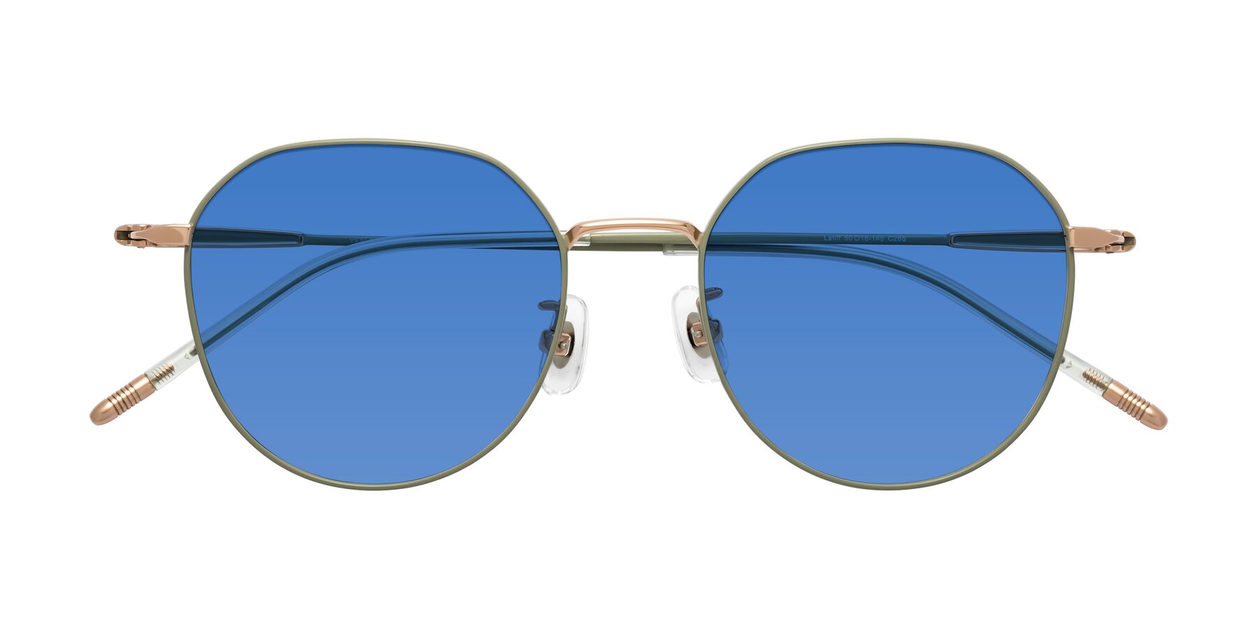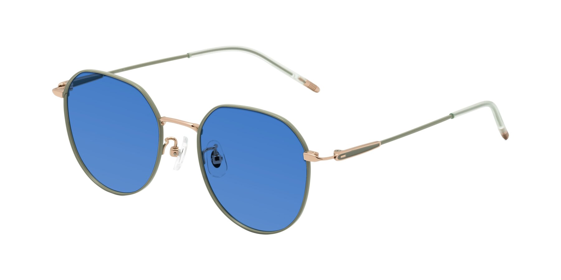 Dusty Olive Titanium Round Geometric Tinted Sunglasses with Blue Sunwear Lenses
