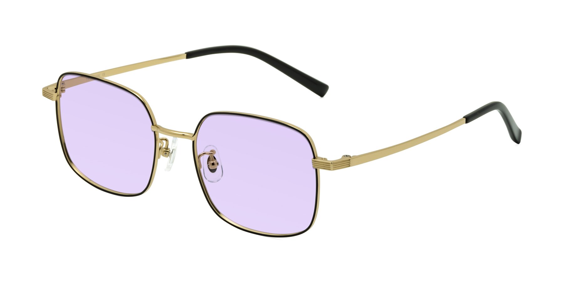 Black/Gold Lightweight Titanium Square Tinted Sunglasses with Light Purple Sunwear Lenses