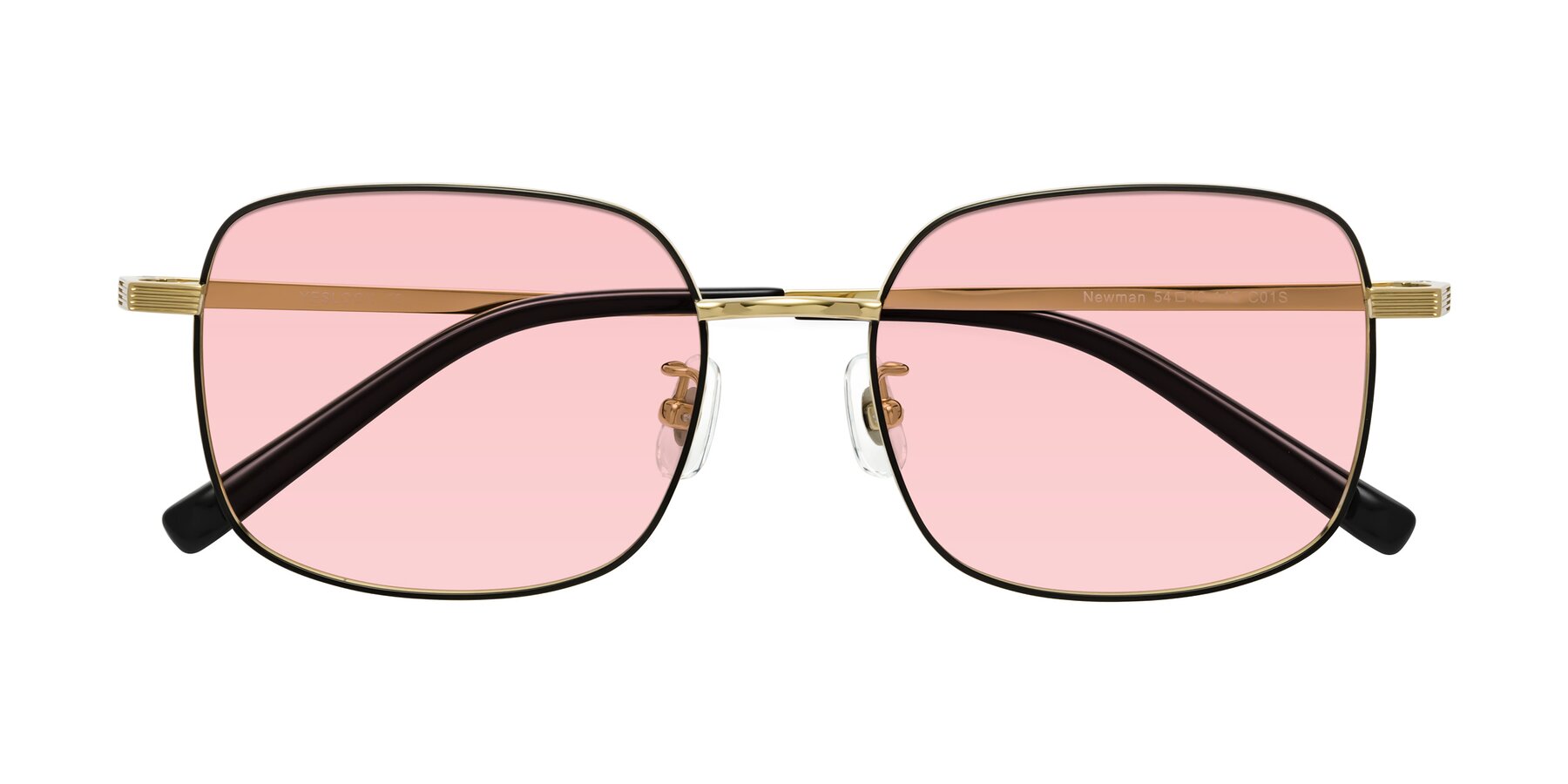 Black/Gold Lightweight Titanium Square Tinted Sunglasses with Light Garnet Sunwear Lenses