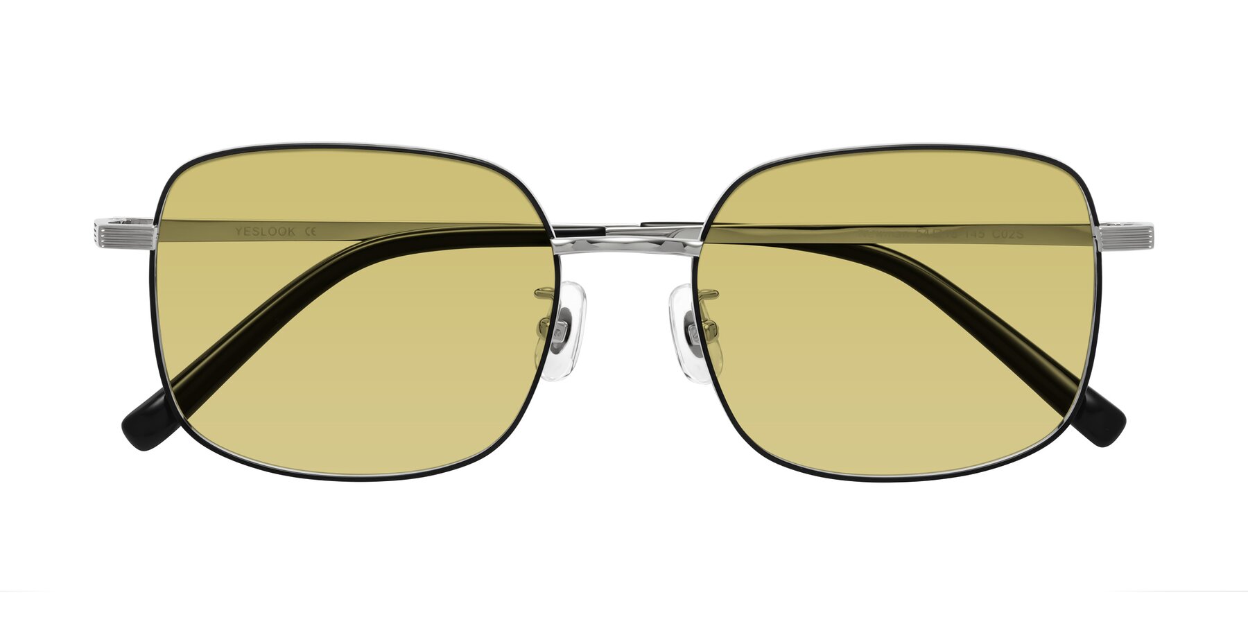 Black/Silver Lightweight Titanium Square Tinted Sunglasses with Medium Champagne Sunwear Lenses