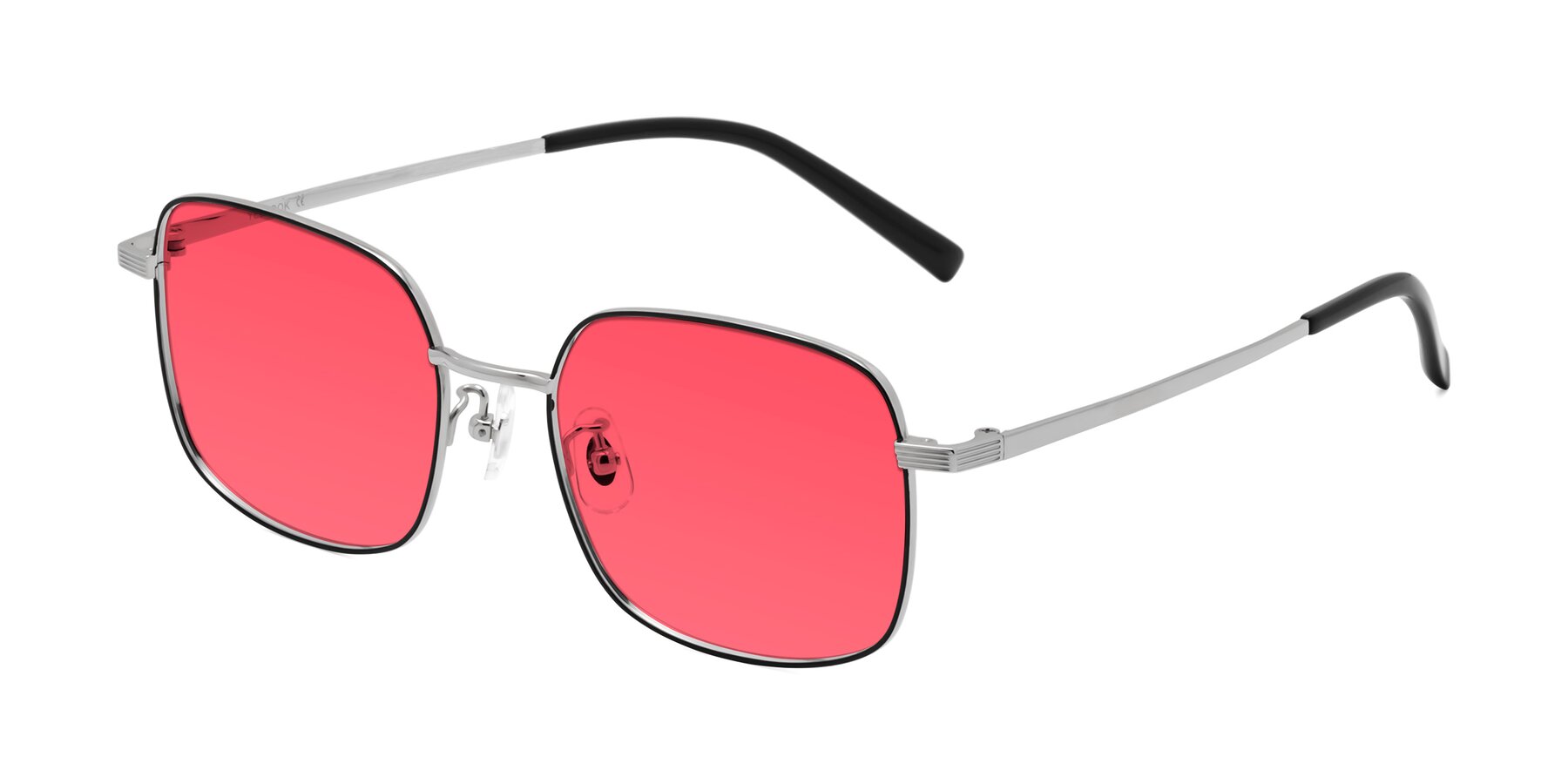 Black/Silver Lightweight Titanium Square Tinted Sunglasses with Red Sunwear Lenses