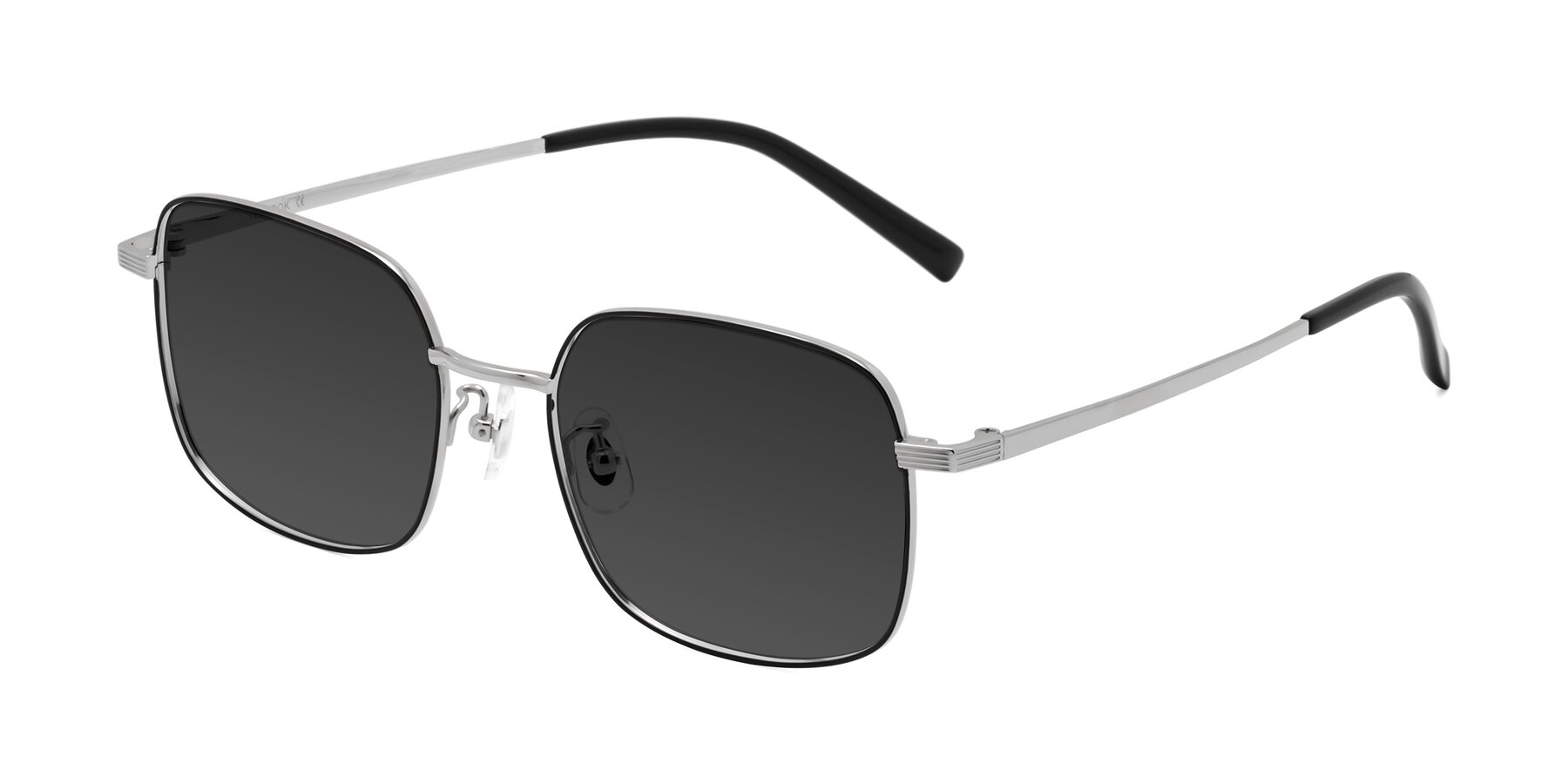 Black/Silver Lightweight Titanium Square Tinted Sunglasses with Gray Sunwear Lenses