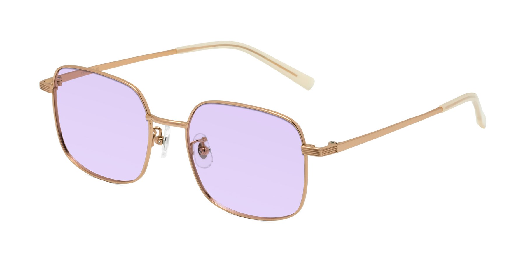 Rose Gold Lightweight Titanium Square Tinted Sunglasses with Light Purple Sunwear Lenses