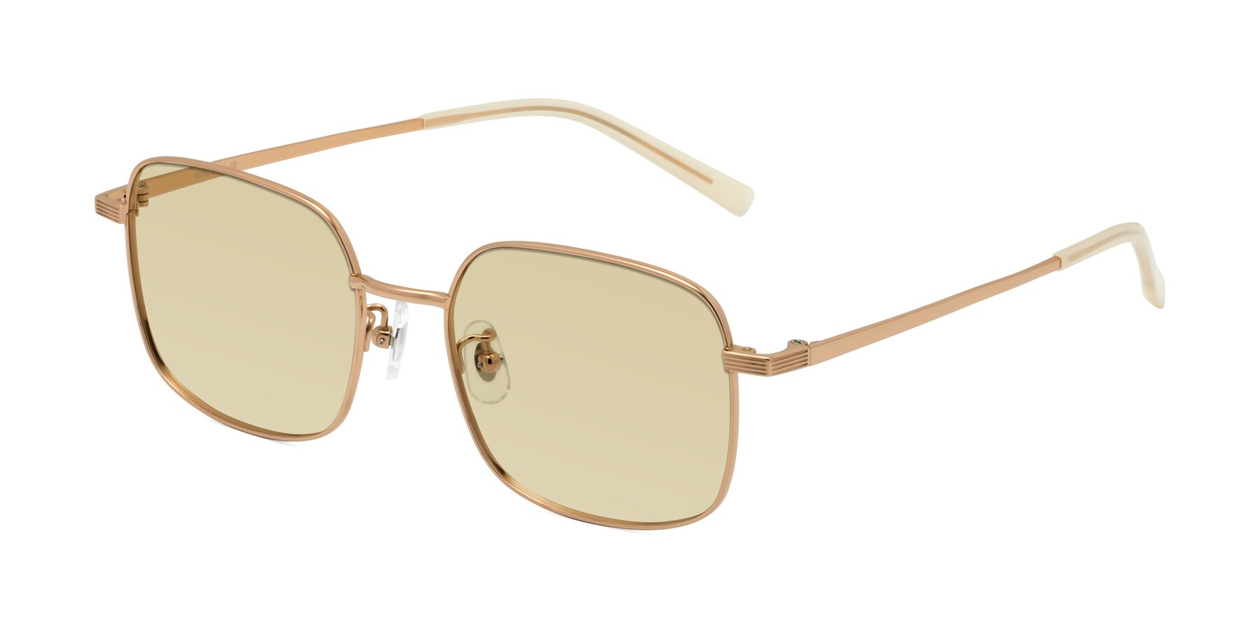 Rose Gold Lightweight Titanium Square Tinted Sunglasses with Light Champagne Sunwear Lenses