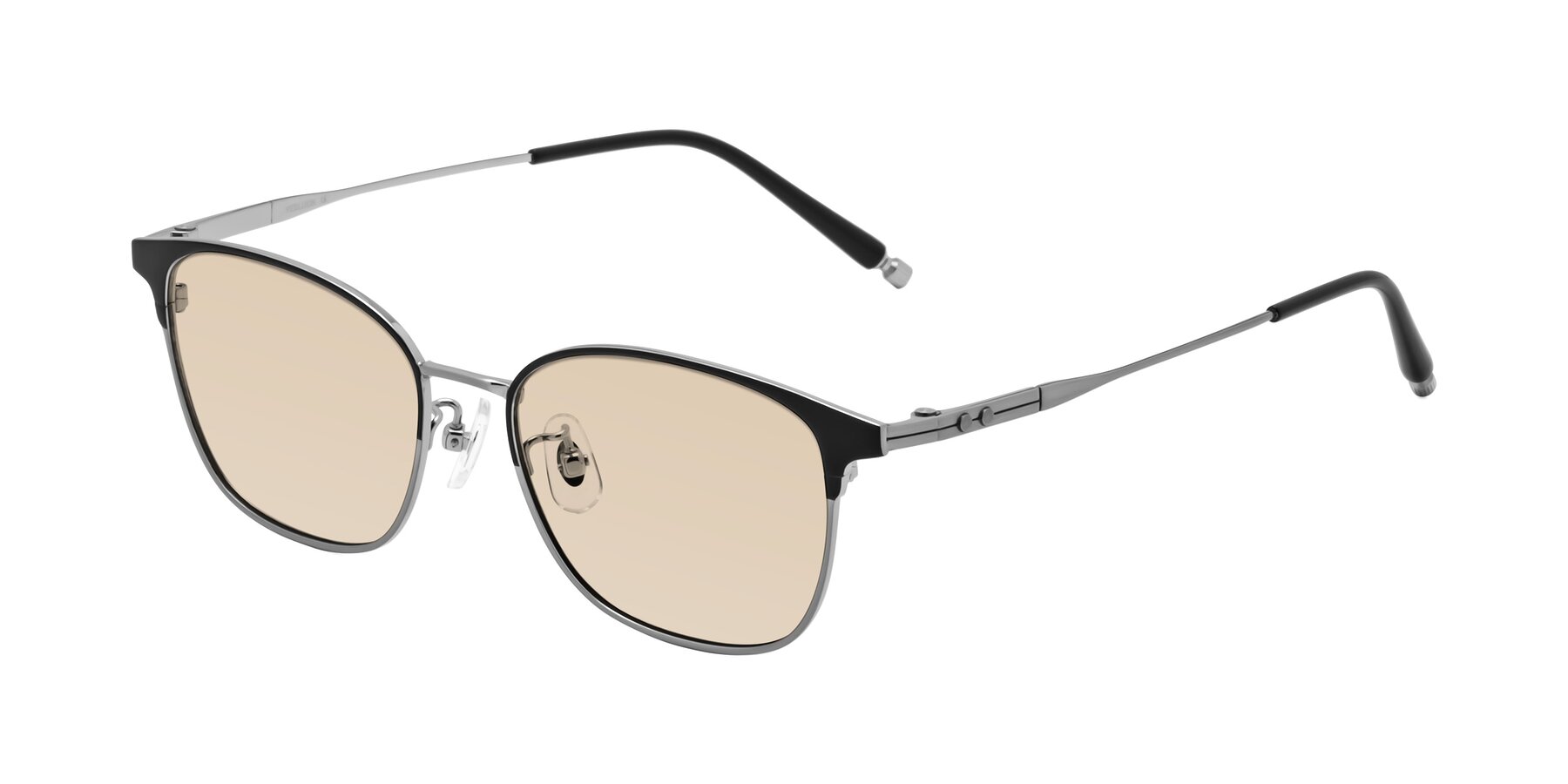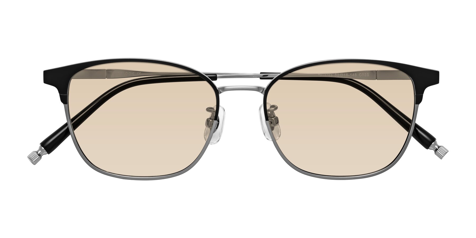 Matte Black/Silver Classic Browline Titanium Tinted Sunglasses with Light Brown Sunwear Lenses