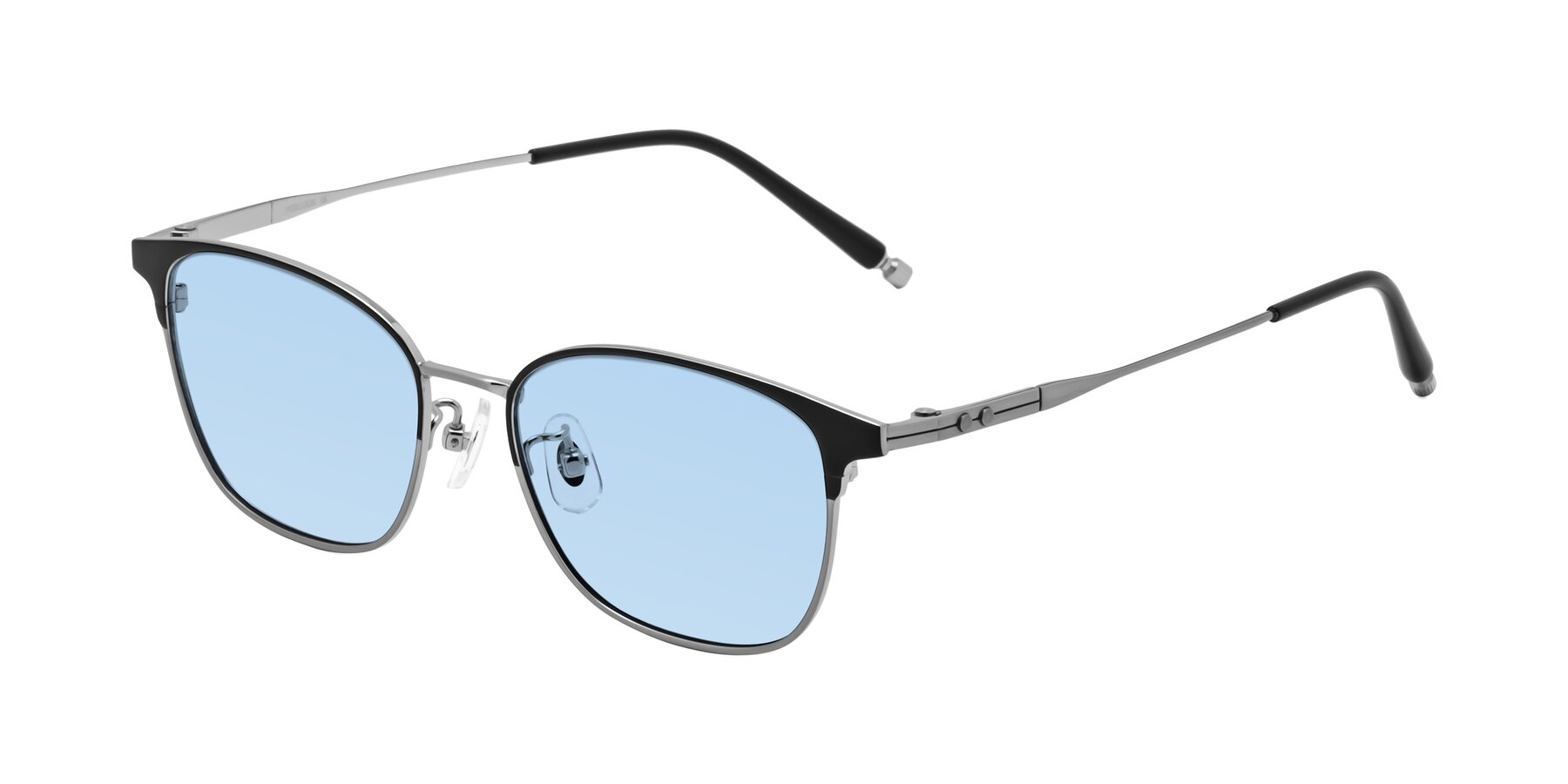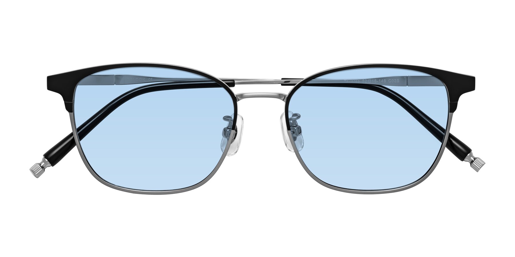 Matte Black/Silver Classic Browline Titanium Tinted Sunglasses with Light Blue Sunwear Lenses