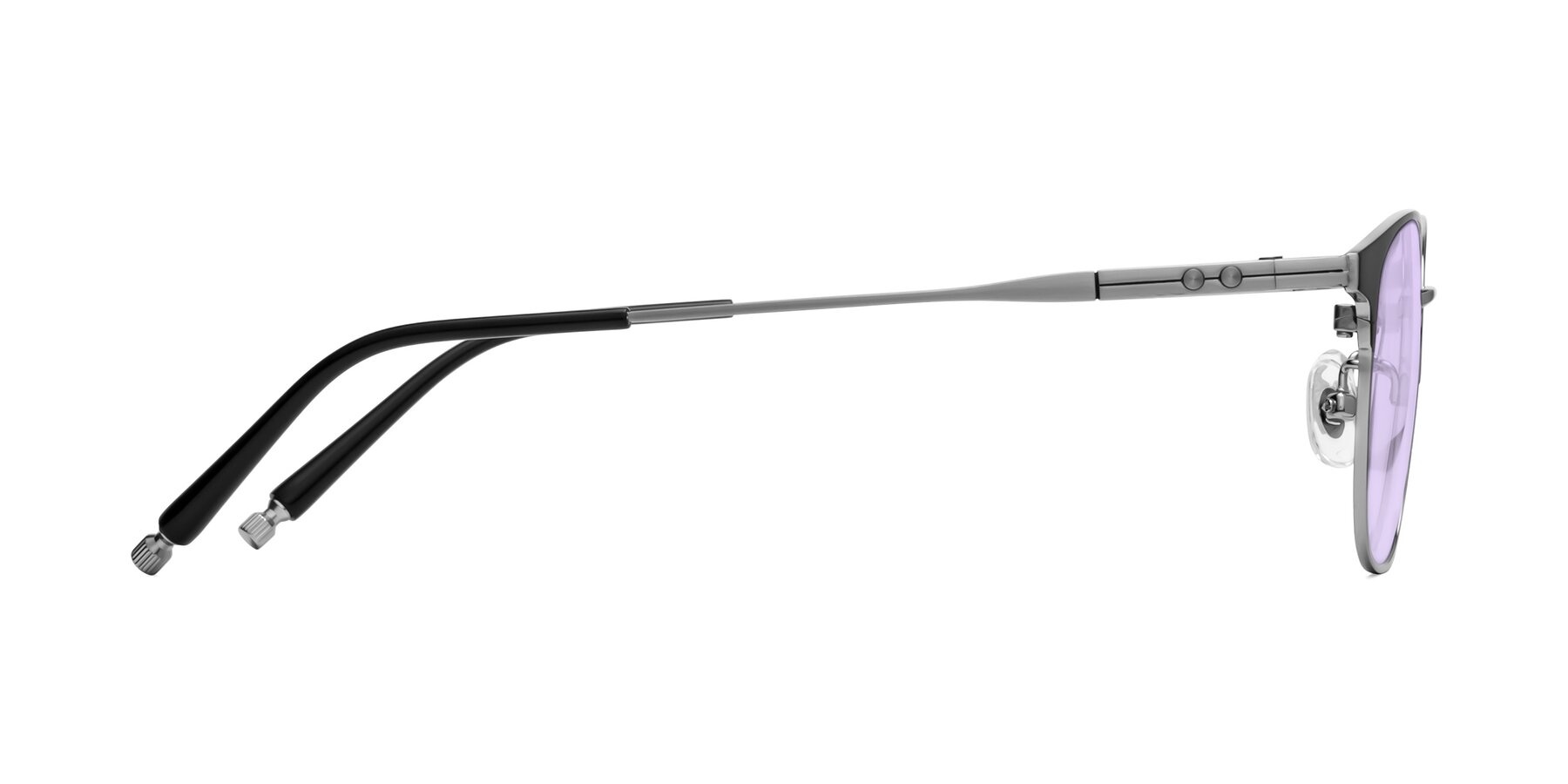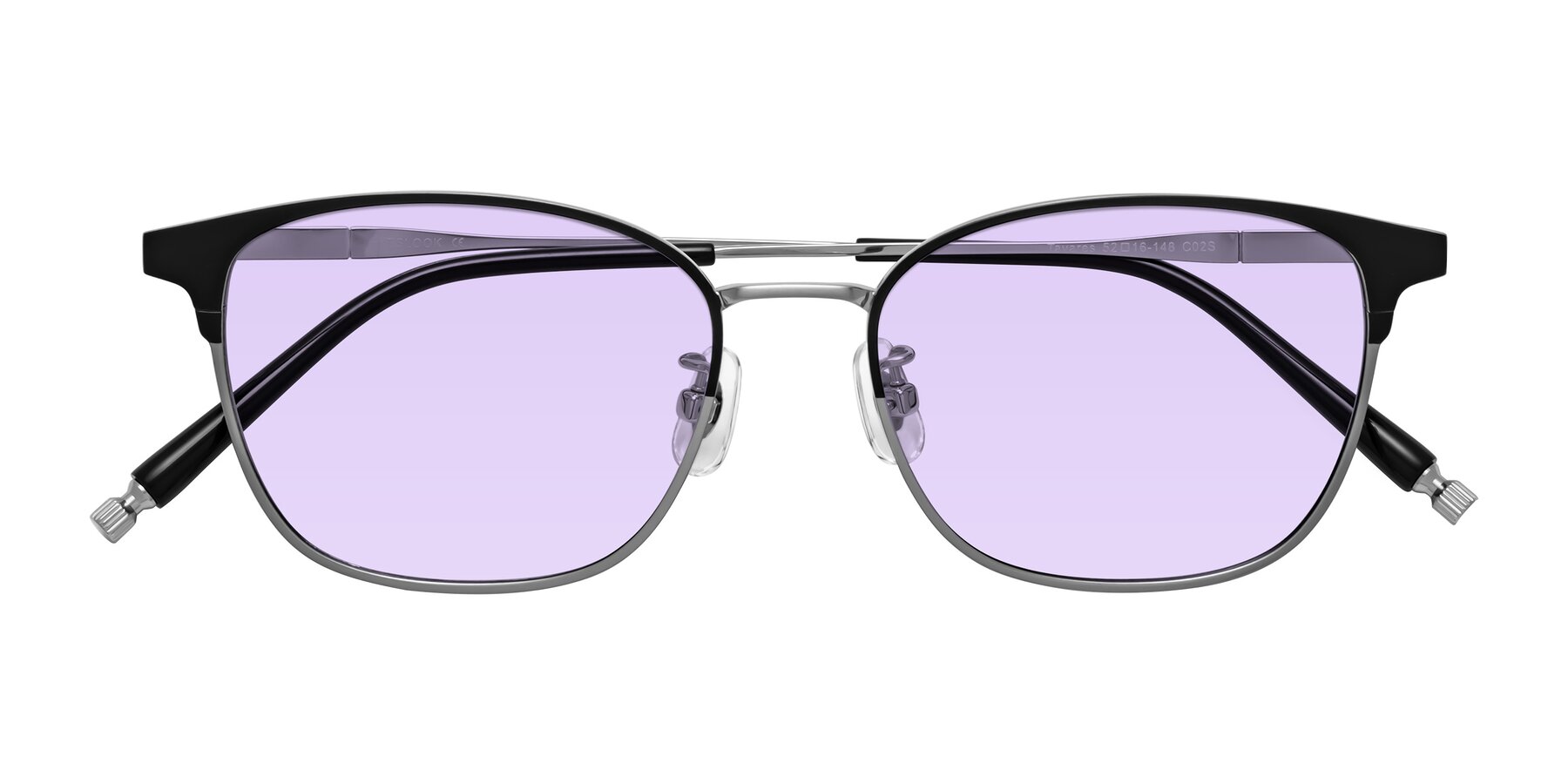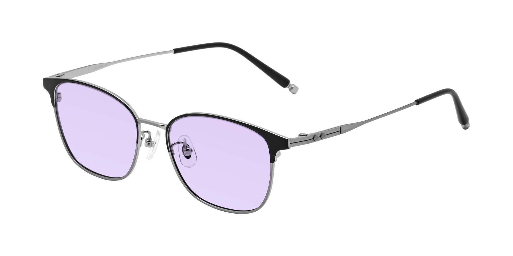 Matte Black/Silver Classic Browline Titanium Tinted Sunglasses with Light Purple Sunwear Lenses