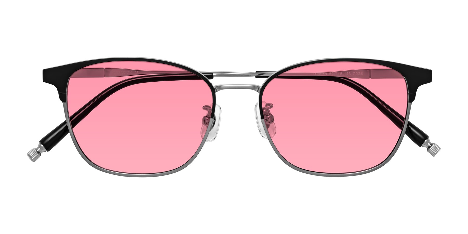 Matte Black/Silver Classic Browline Titanium Tinted Sunglasses with Pink Sunwear Lenses