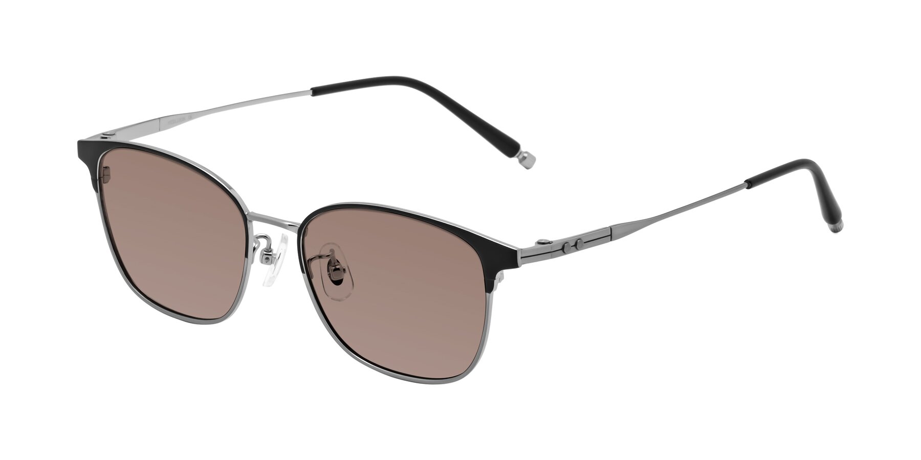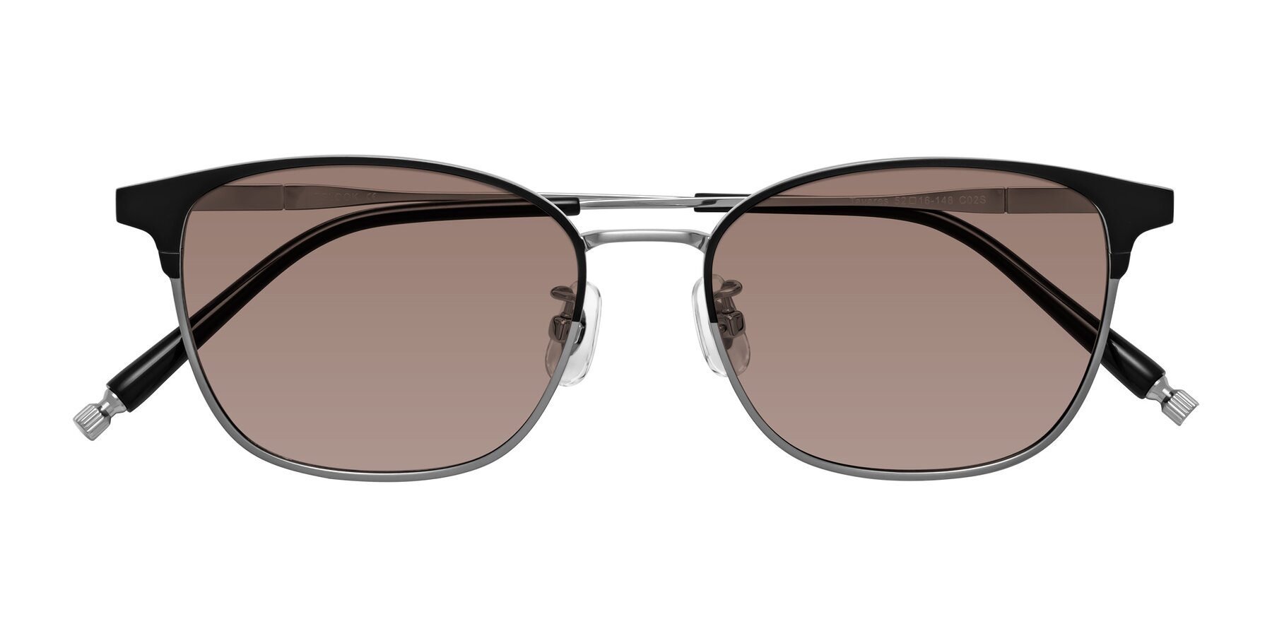 Matte Black/Silver Classic Browline Titanium Tinted Sunglasses with Medium Brown Sunwear Lenses