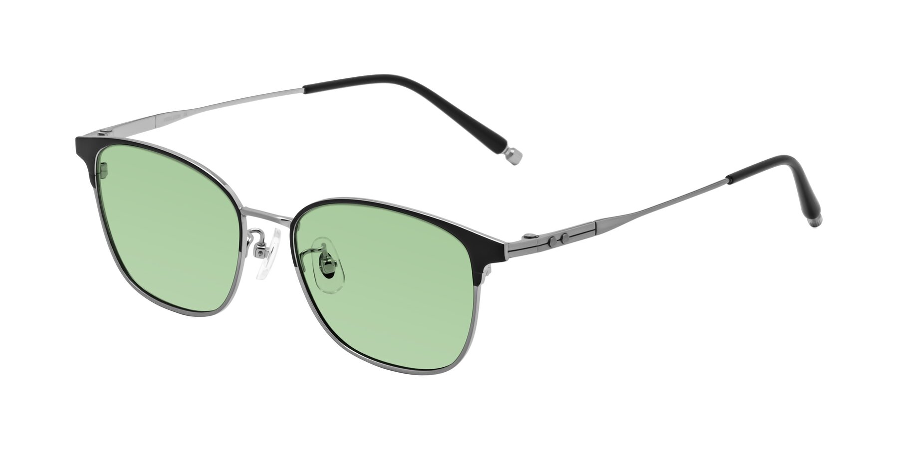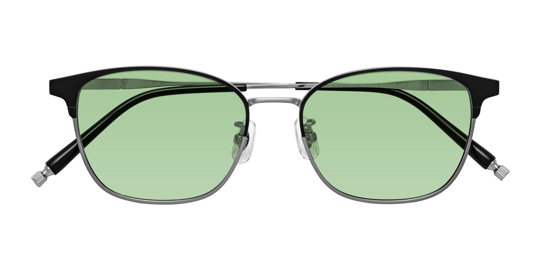Matte Black/Silver Classic Browline Titanium Tinted Sunglasses with Medium Green Sunwear Lenses
