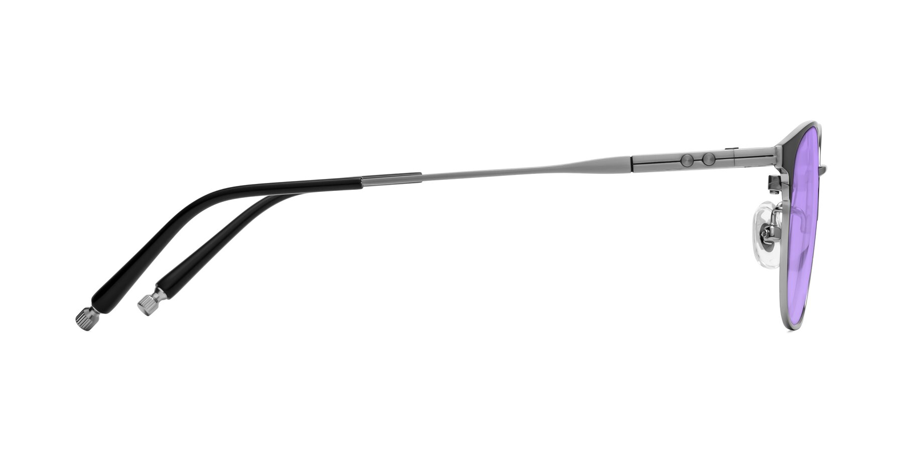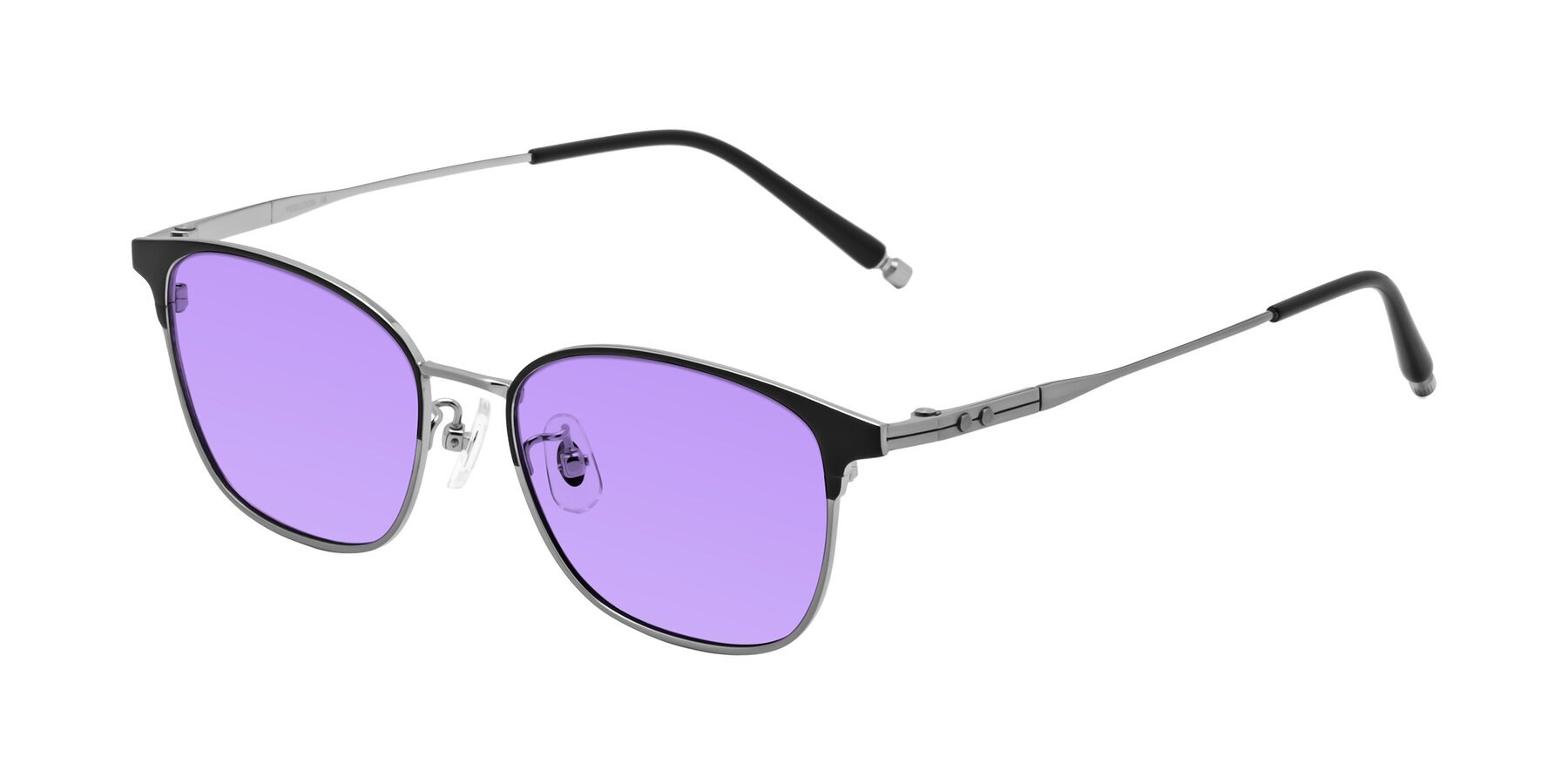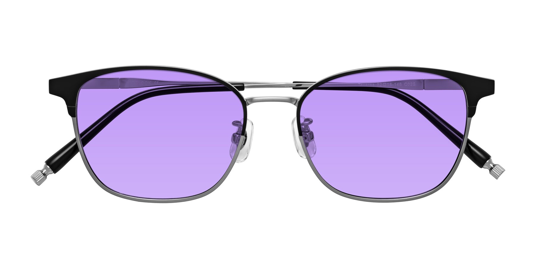 Matte Black/Silver Classic Browline Titanium Tinted Sunglasses with Medium Purple Sunwear Lenses