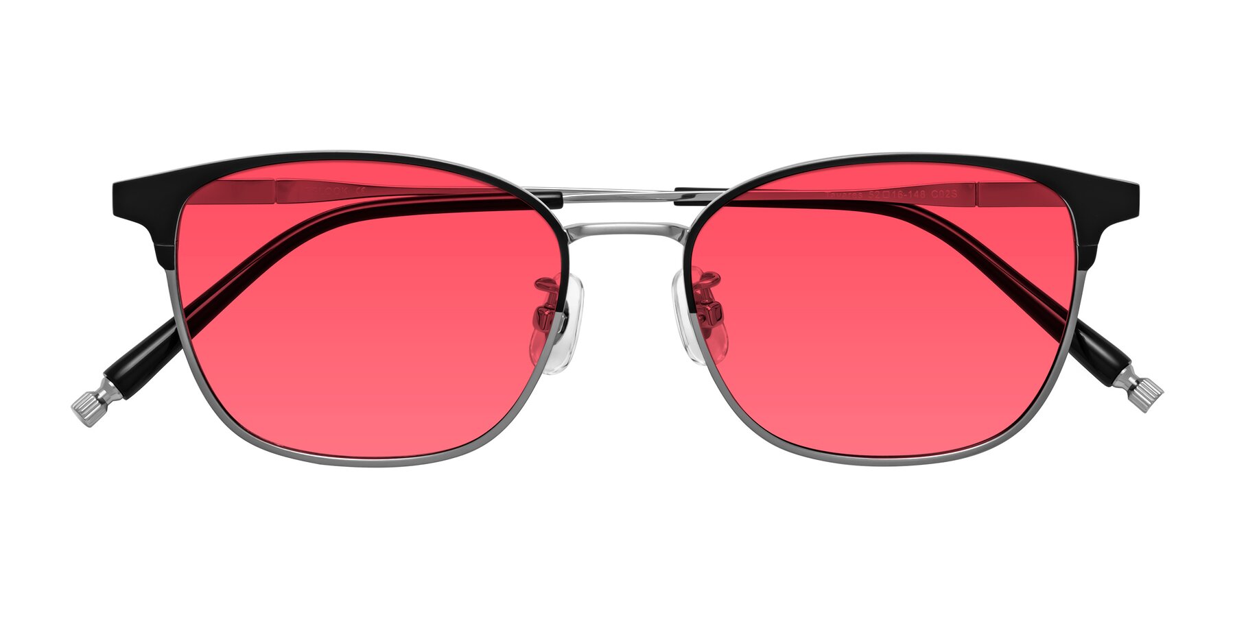 Matte Black/Silver Classic Browline Titanium Tinted Sunglasses with Red Sunwear Lenses