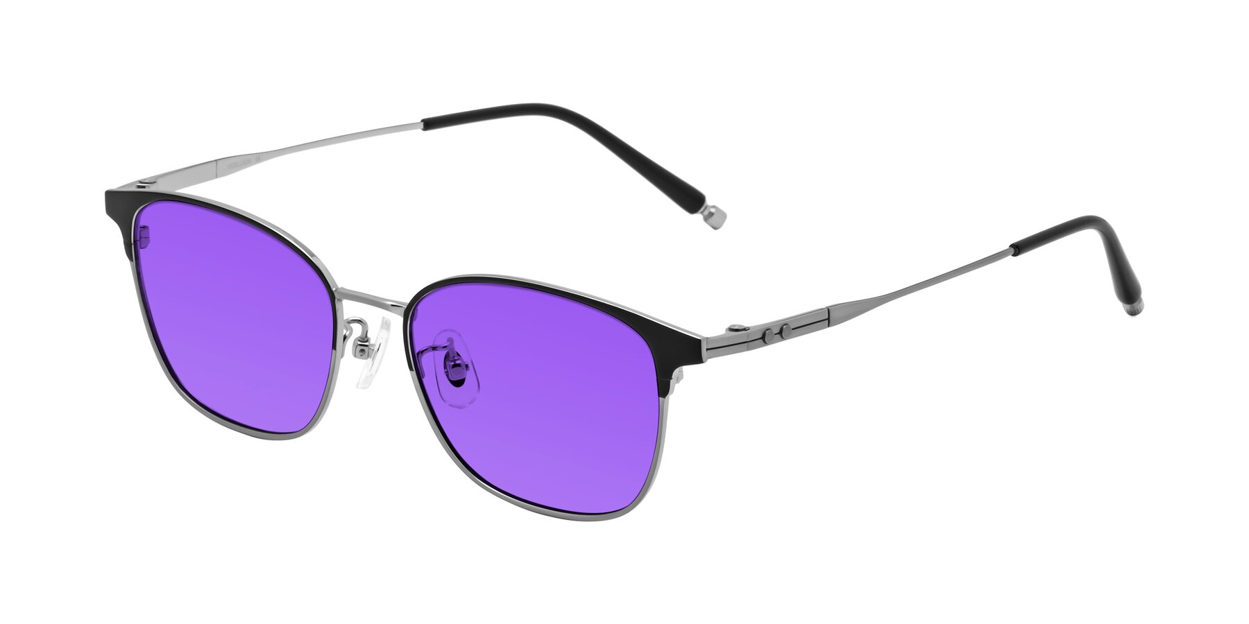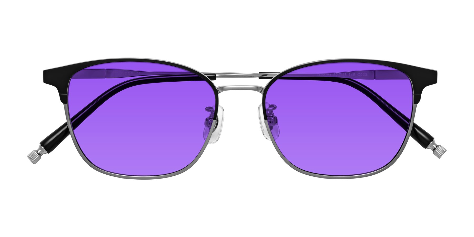 Matte Black/Silver Classic Browline Titanium Tinted Sunglasses with Purple Sunwear Lenses