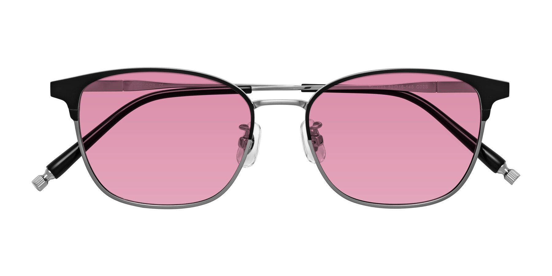 Matte Black/Silver Classic Browline Titanium Tinted Sunglasses with Medium Wine Sunwear Lenses