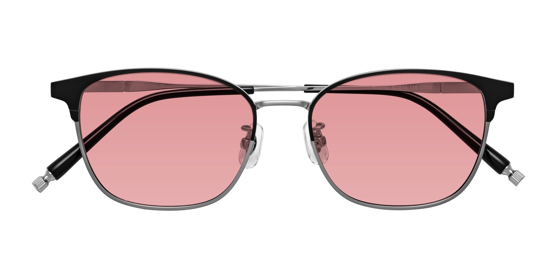 Matte Black/Silver Classic Browline Titanium Tinted Sunglasses with Medium Garnet Sunwear Lenses