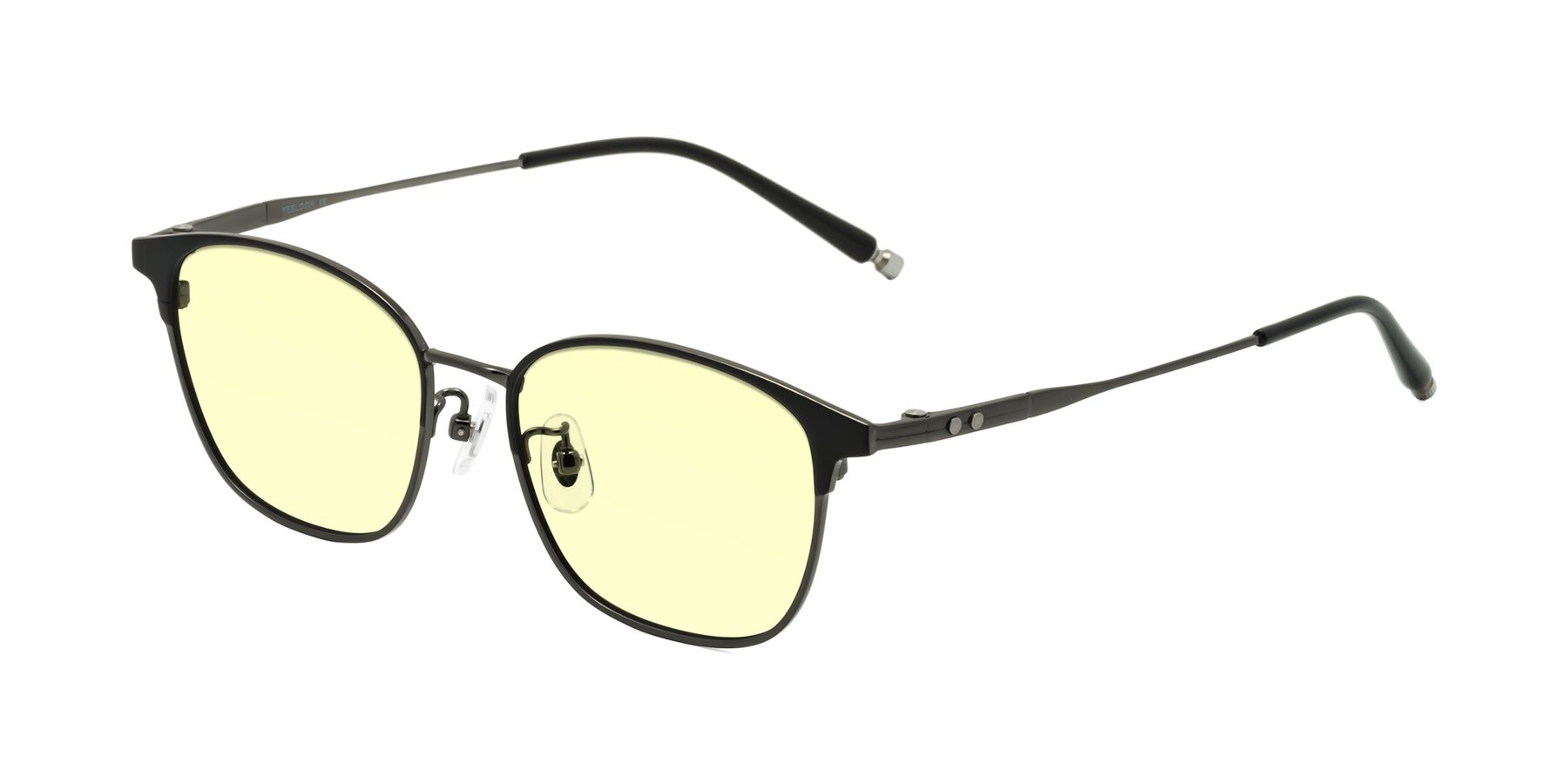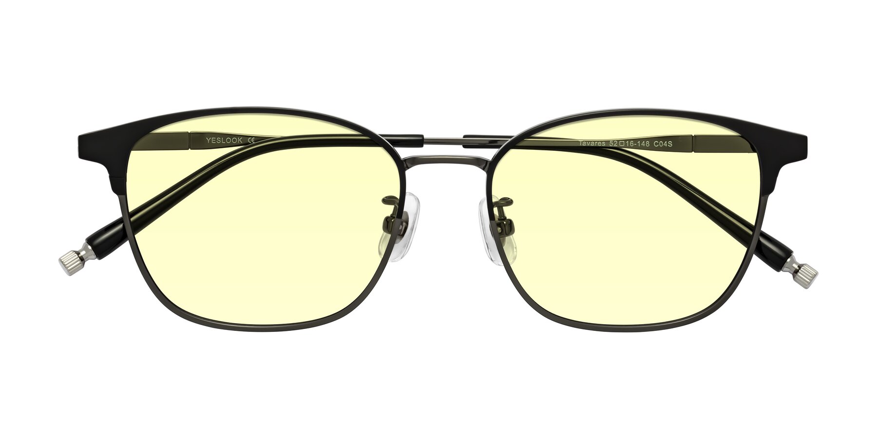 Matte Black/Gunmetal Classic Browline Titanium Tinted Sunglasses with Light Yellow Sunwear Lenses