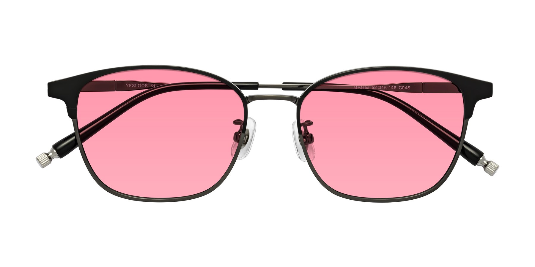 Matte Black/Gunmetal Classic Browline Titanium Tinted Sunglasses with Pink Sunwear Lenses