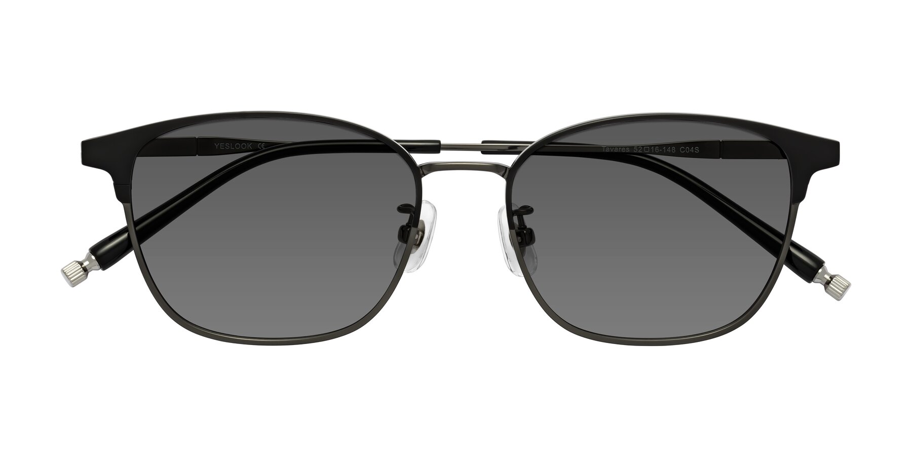 Matte Black/Gunmetal Classic Browline Titanium Tinted Sunglasses with Medium Gray Sunwear Lenses