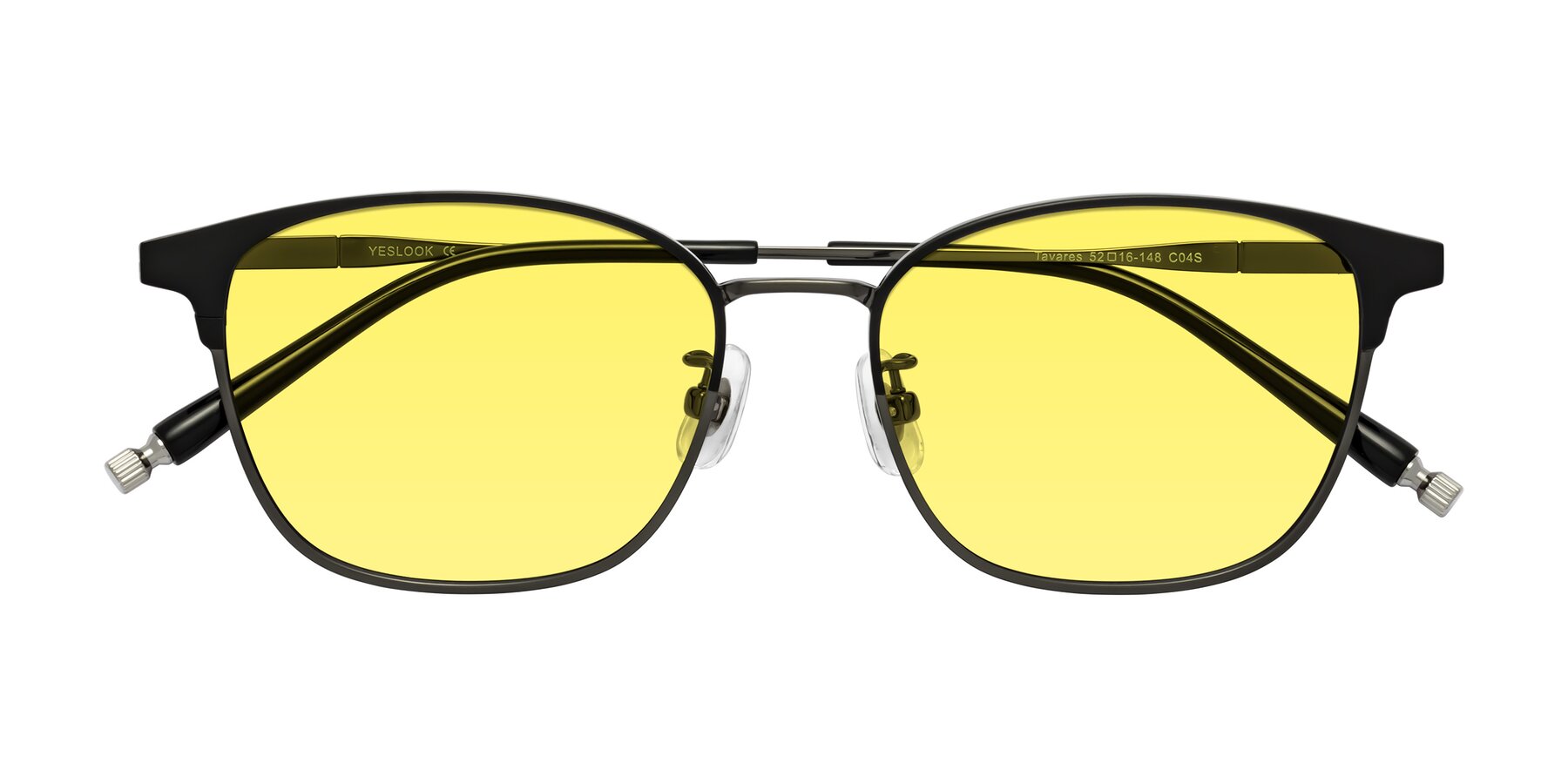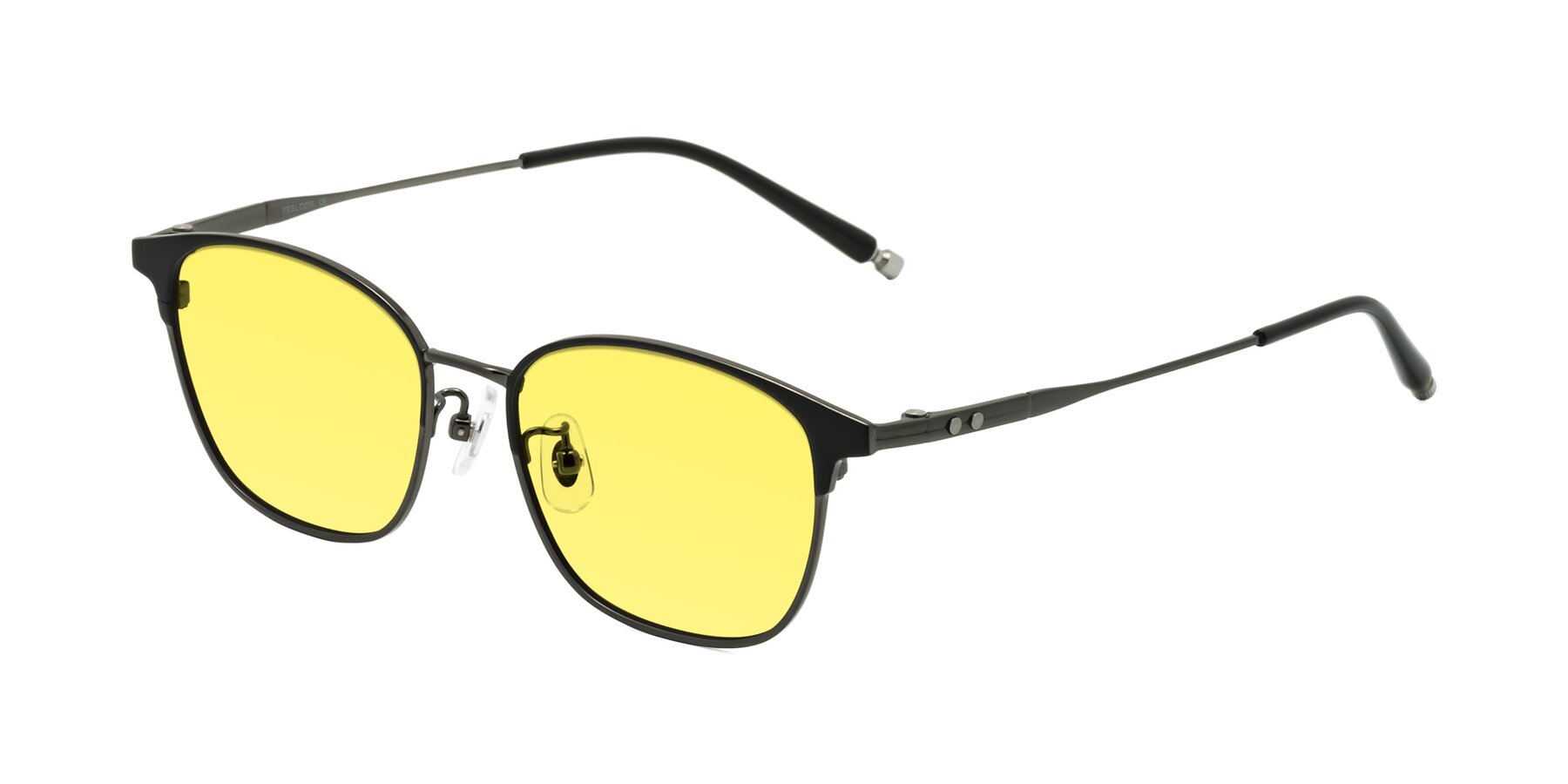 Matte Black/Gunmetal Classic Browline Titanium Tinted Sunglasses with Medium Yellow Sunwear Lenses