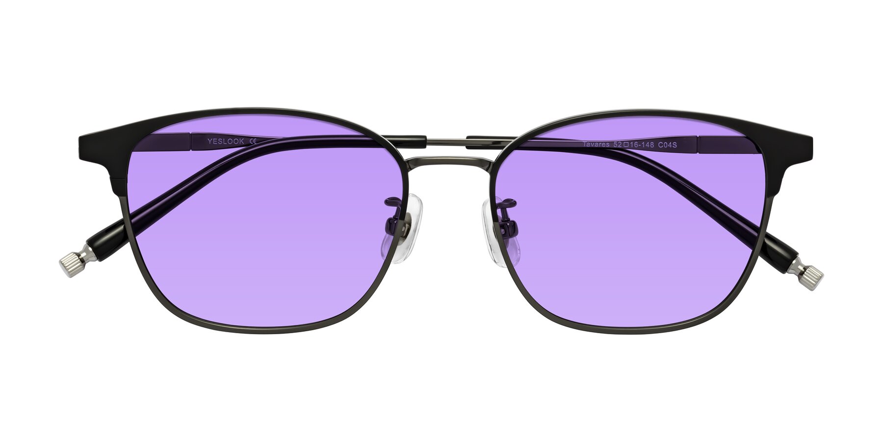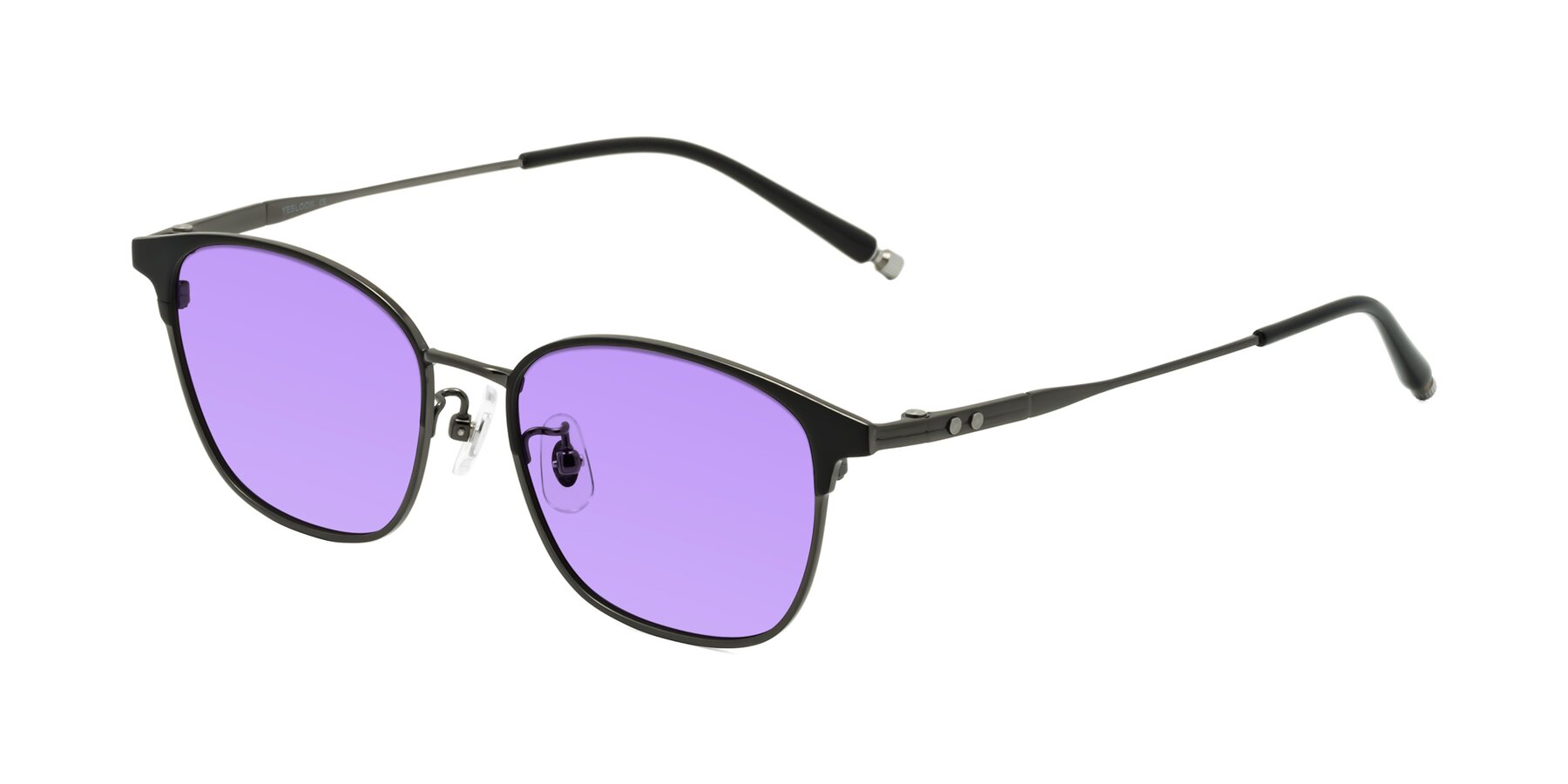 Matte Black/Gunmetal Classic Browline Titanium Tinted Sunglasses with Medium Purple Sunwear Lenses