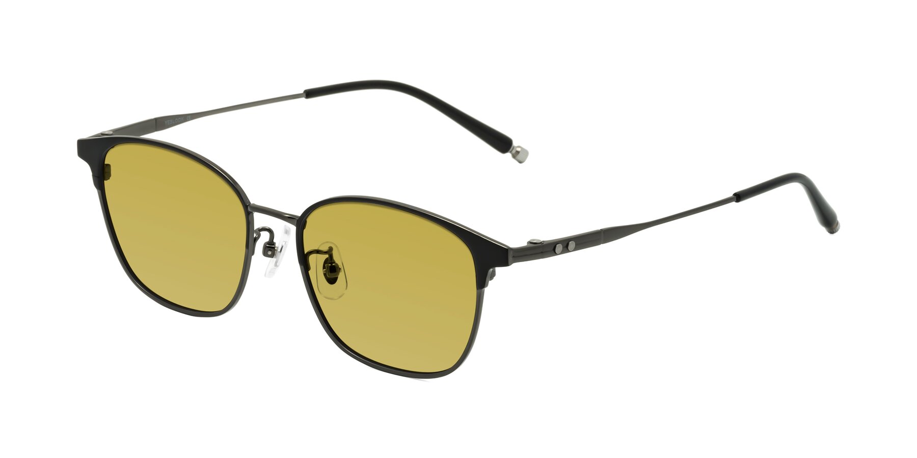 Matte Black/Gunmetal Classic Browline Titanium Tinted Sunglasses with Champagne Sunwear Lenses