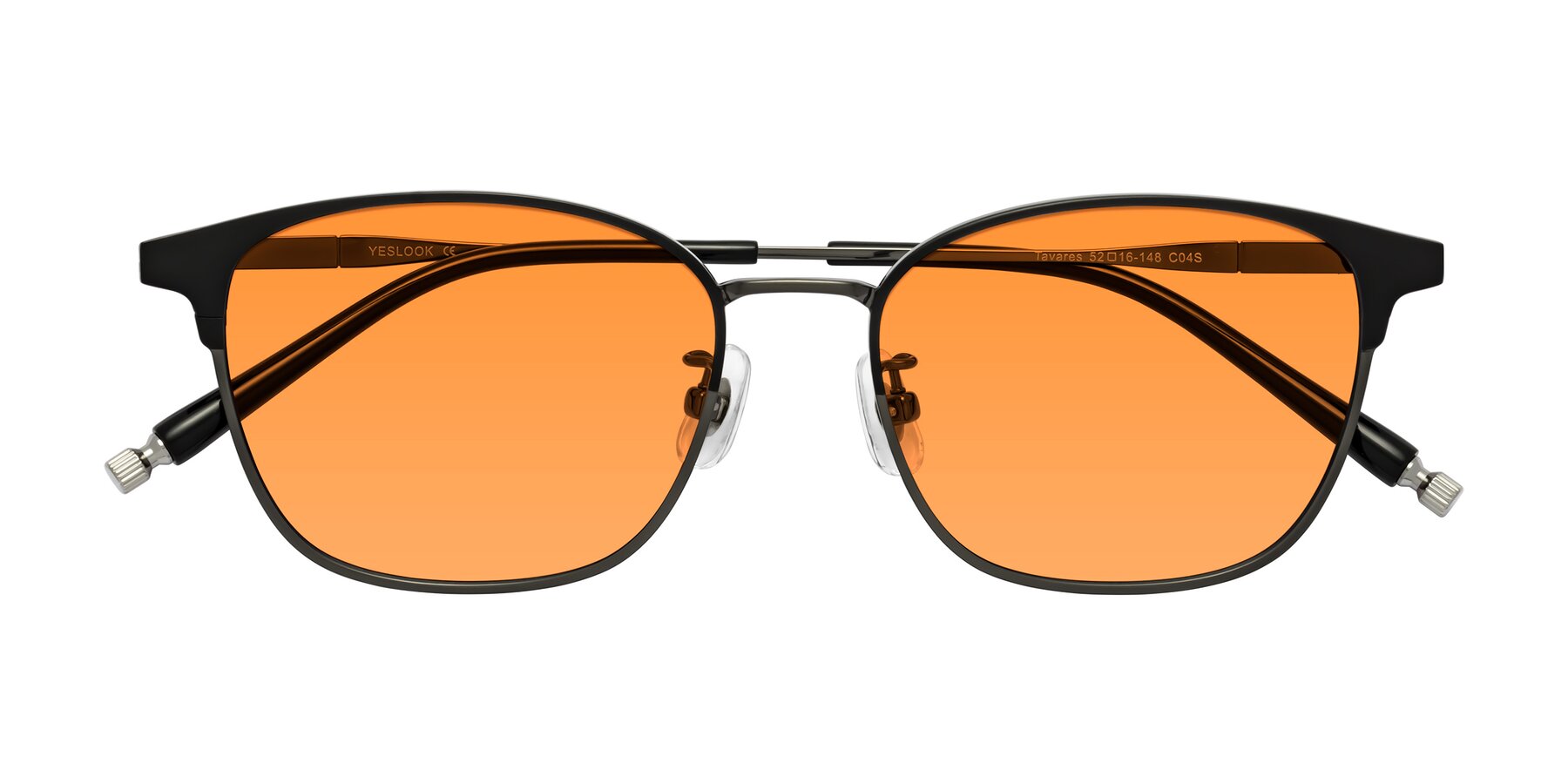 Matte Black/Gunmetal Classic Browline Titanium Tinted Sunglasses with Orange Sunwear Lenses