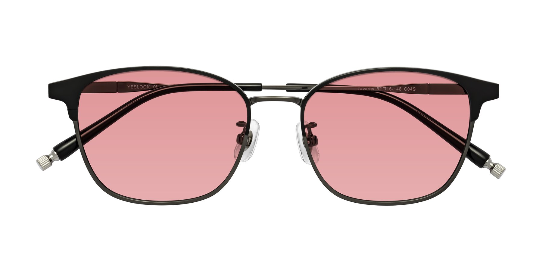 Matte Black/Gunmetal Classic Browline Titanium Tinted Sunglasses with Medium Garnet Sunwear Lenses