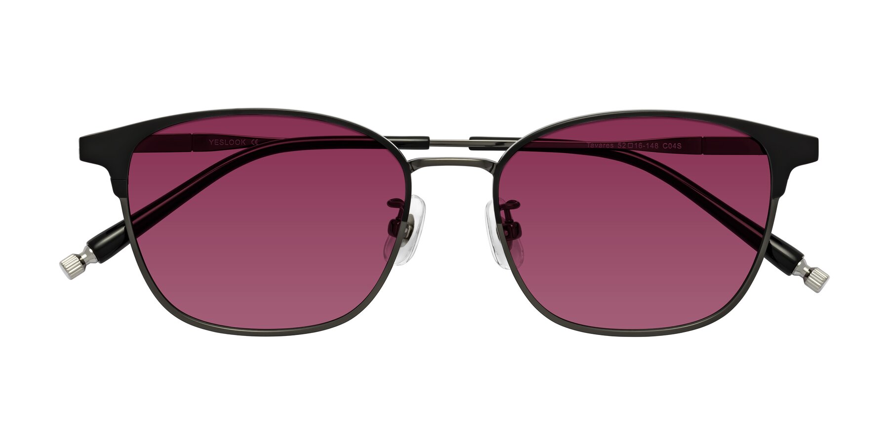 Matte Black/Gunmetal Classic Browline Titanium Tinted Sunglasses with Wine Sunwear Lenses