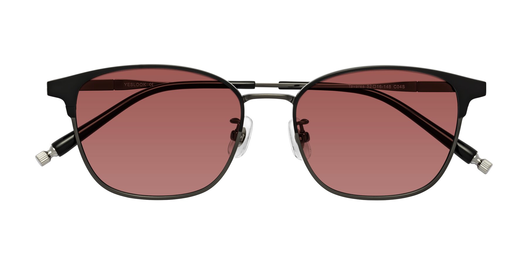 Matte Black/Gunmetal Classic Browline Titanium Tinted Sunglasses with Garnet Sunwear Lenses