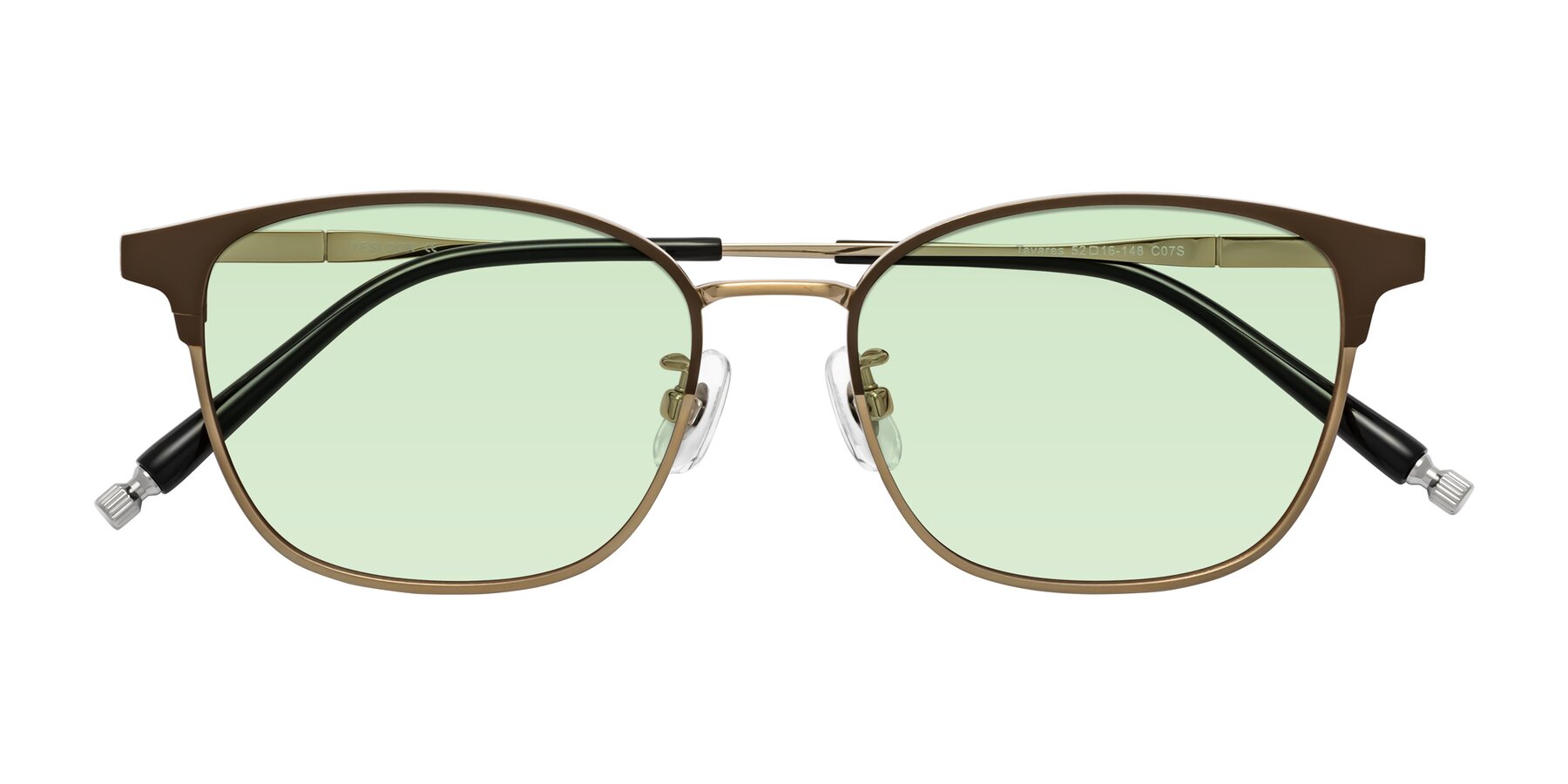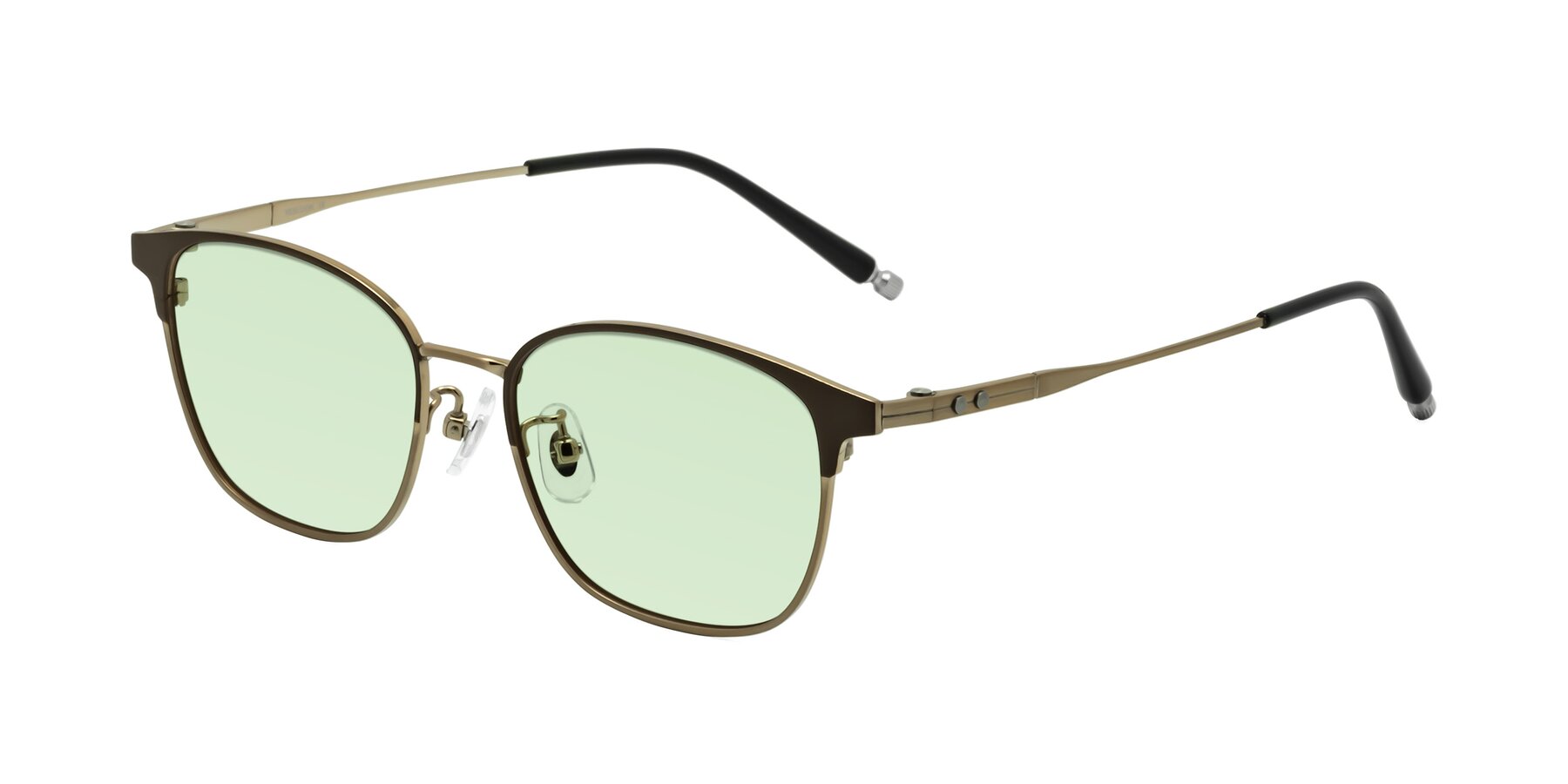 Coffee Gunmetal/Bronze Classic Browline Titanium Tinted Sunglasses with Light Green Sunwear Lenses