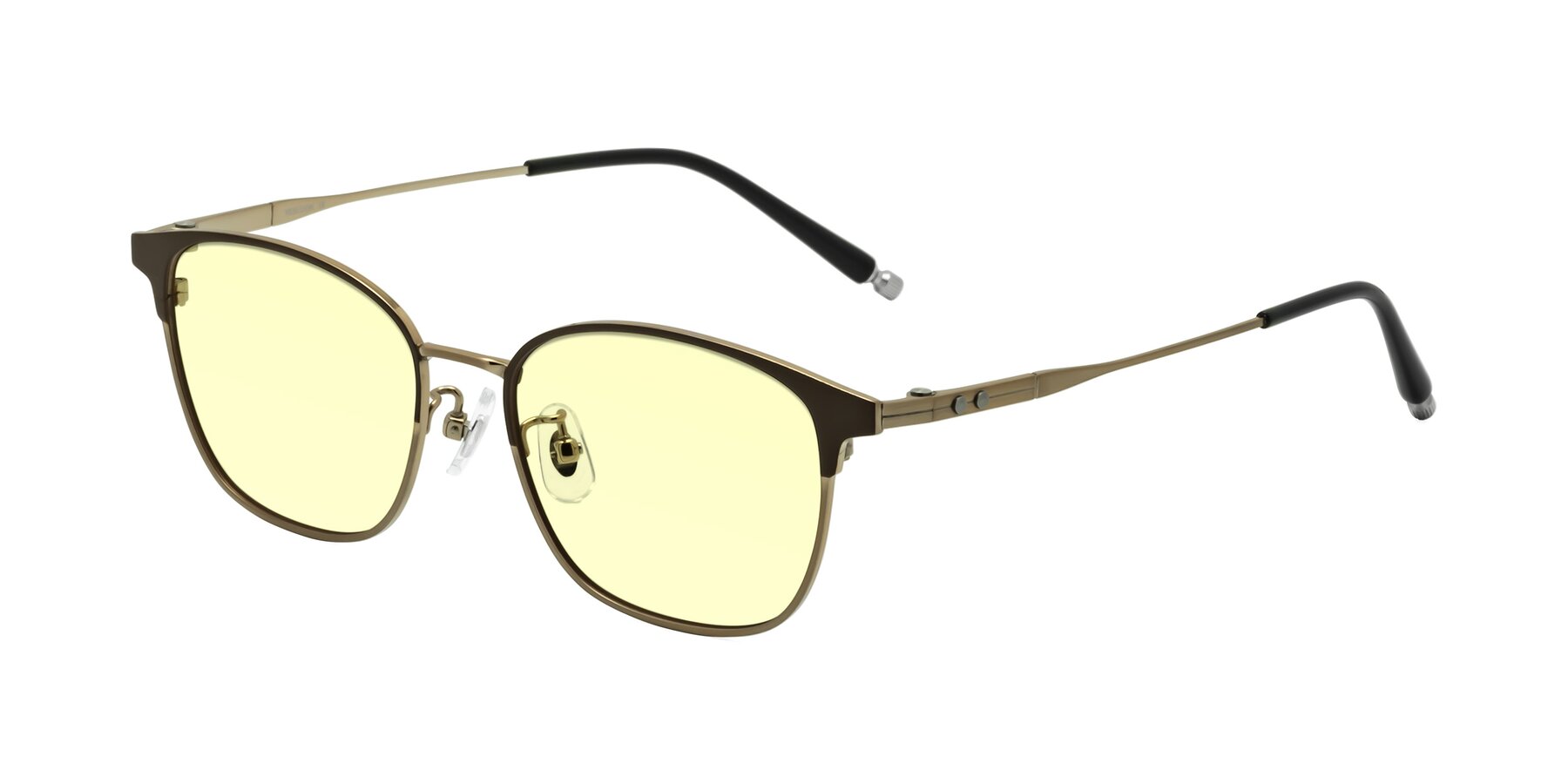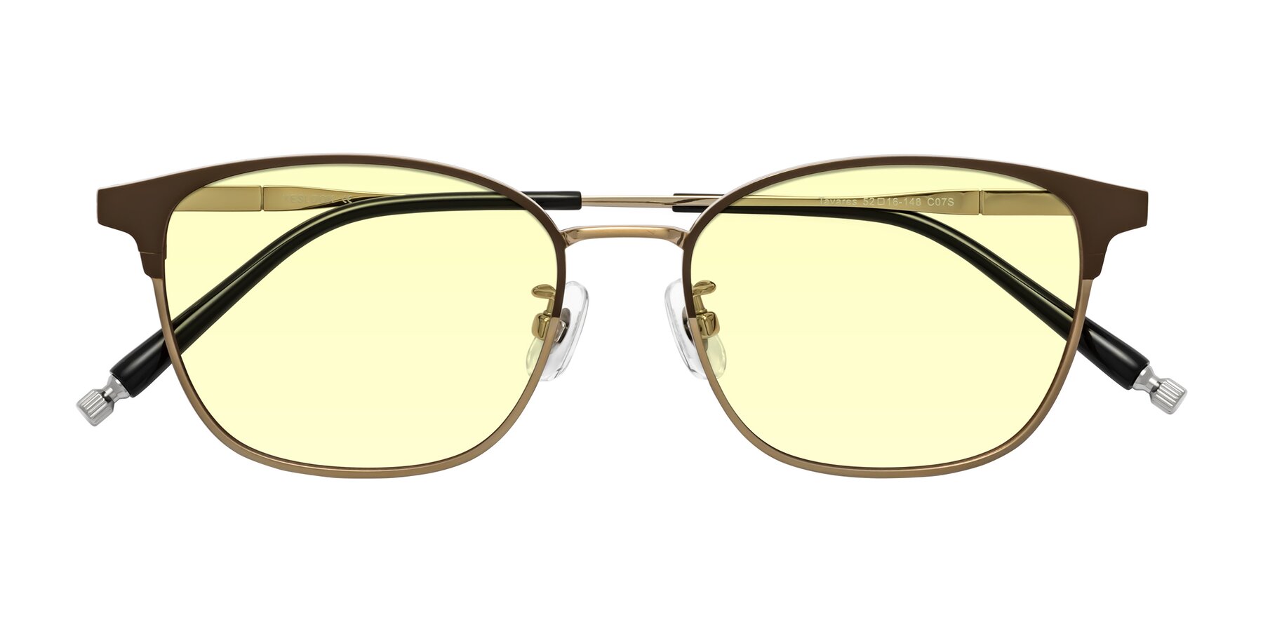 Coffee Gunmetal/Bronze Classic Browline Titanium Tinted Sunglasses with Light Yellow Sunwear Lenses