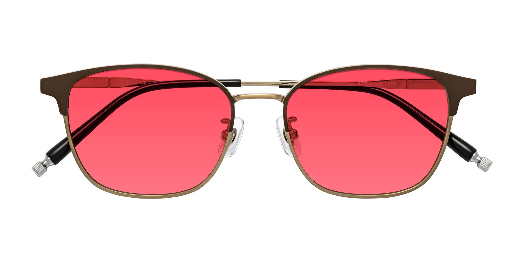 Coffee Gunmetal/Bronze Classic Browline Titanium Tinted Sunglasses with Red Sunwear Lenses
