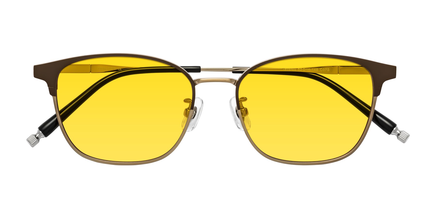 Coffee Gunmetal/Bronze Classic Browline Titanium Tinted Sunglasses with Yellow Sunwear Lenses